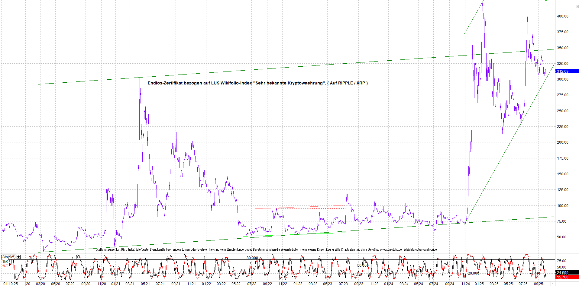 Anbei das dazugehörige Ripplezertifikat, bekannt als: Endlos-Zertifikat bezogen auf LUS Wikifolio-Index „Sehr bekannte Kryptowaehrung“.