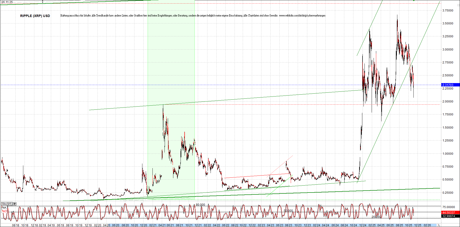 RIPPLE (XRP) – 6 Jahre Chart, von heute Morgen, mit Charttechnik.