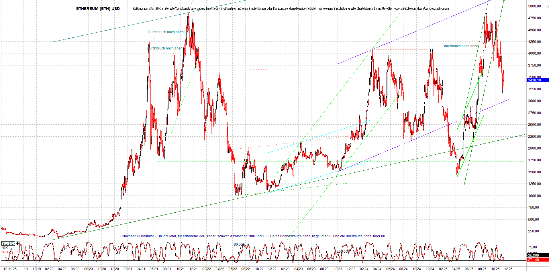 ETHEREUM (ETH) – 5 Jahre Chart, von heute Morgen, mit Charttechnik.