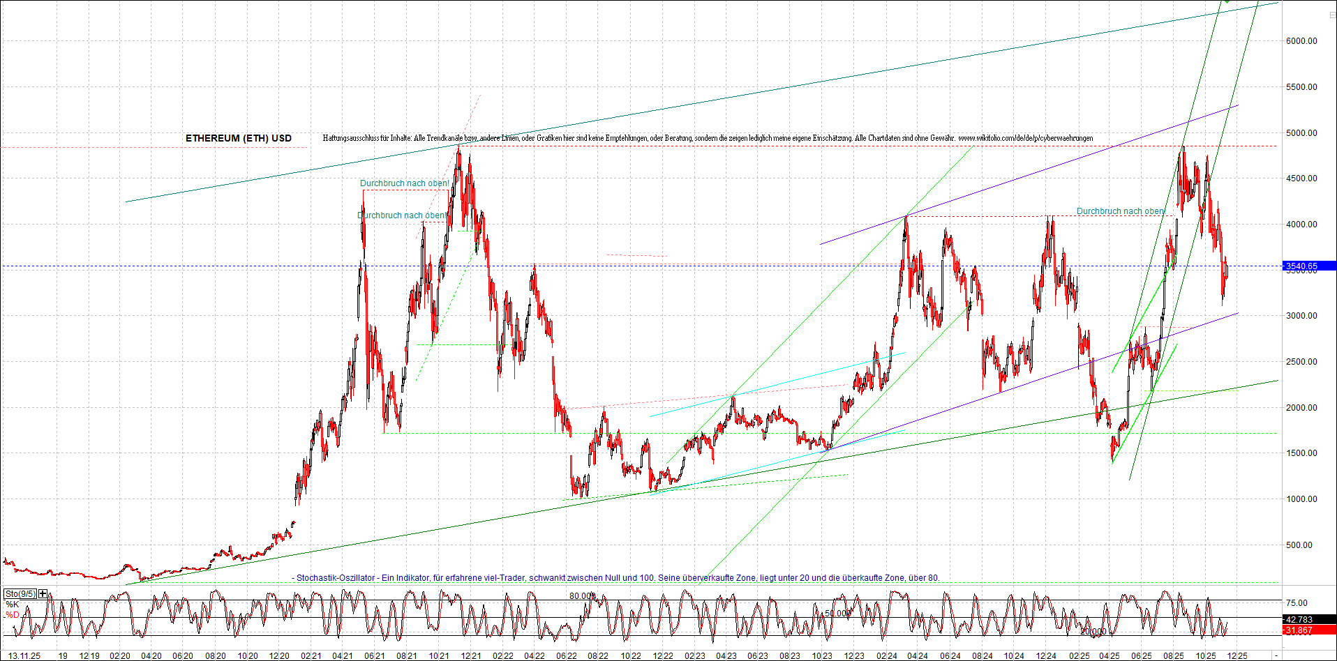 ETHEREUM (ETH) – 5 Jahre Chart, von heute Morgen, mit Charttechnik.
