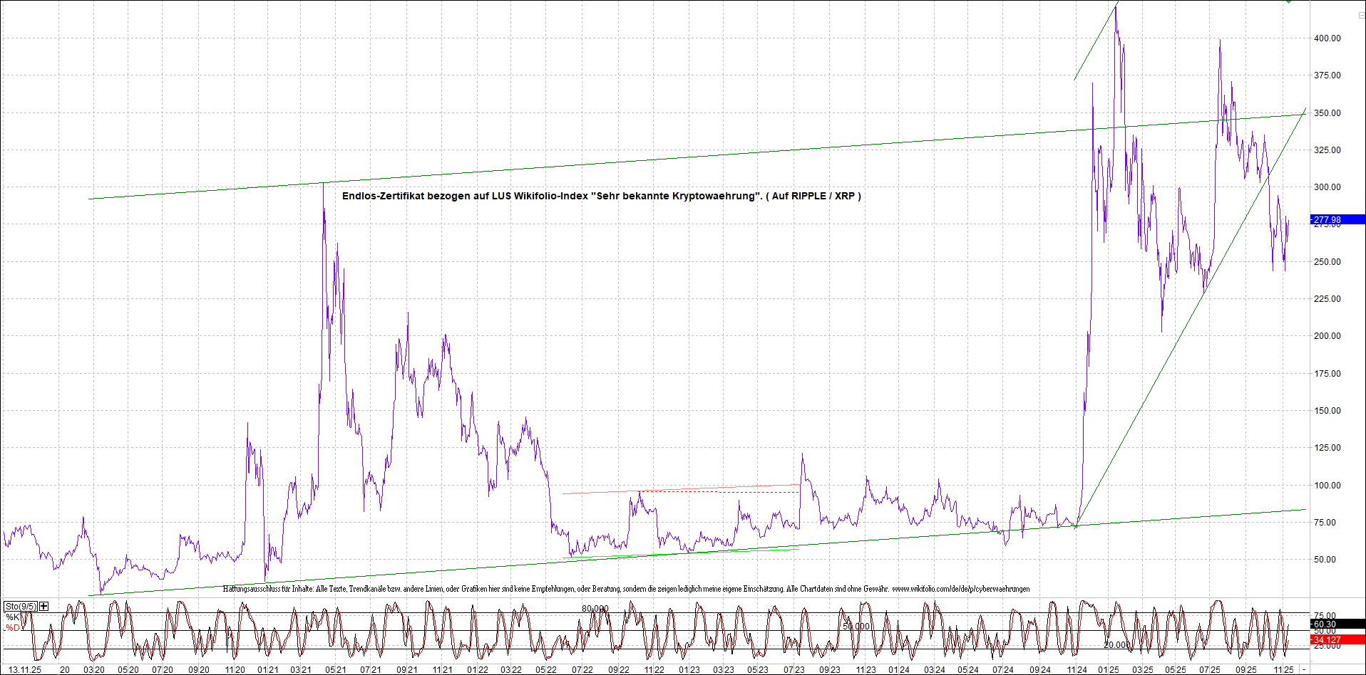 Anbei das dazugehörige Ripplezertifikat, bekannt als: Endlos-Zertifikat bezogen auf LUS Wikifolio-Index „Sehr bekannte Kryptowaehrung“.