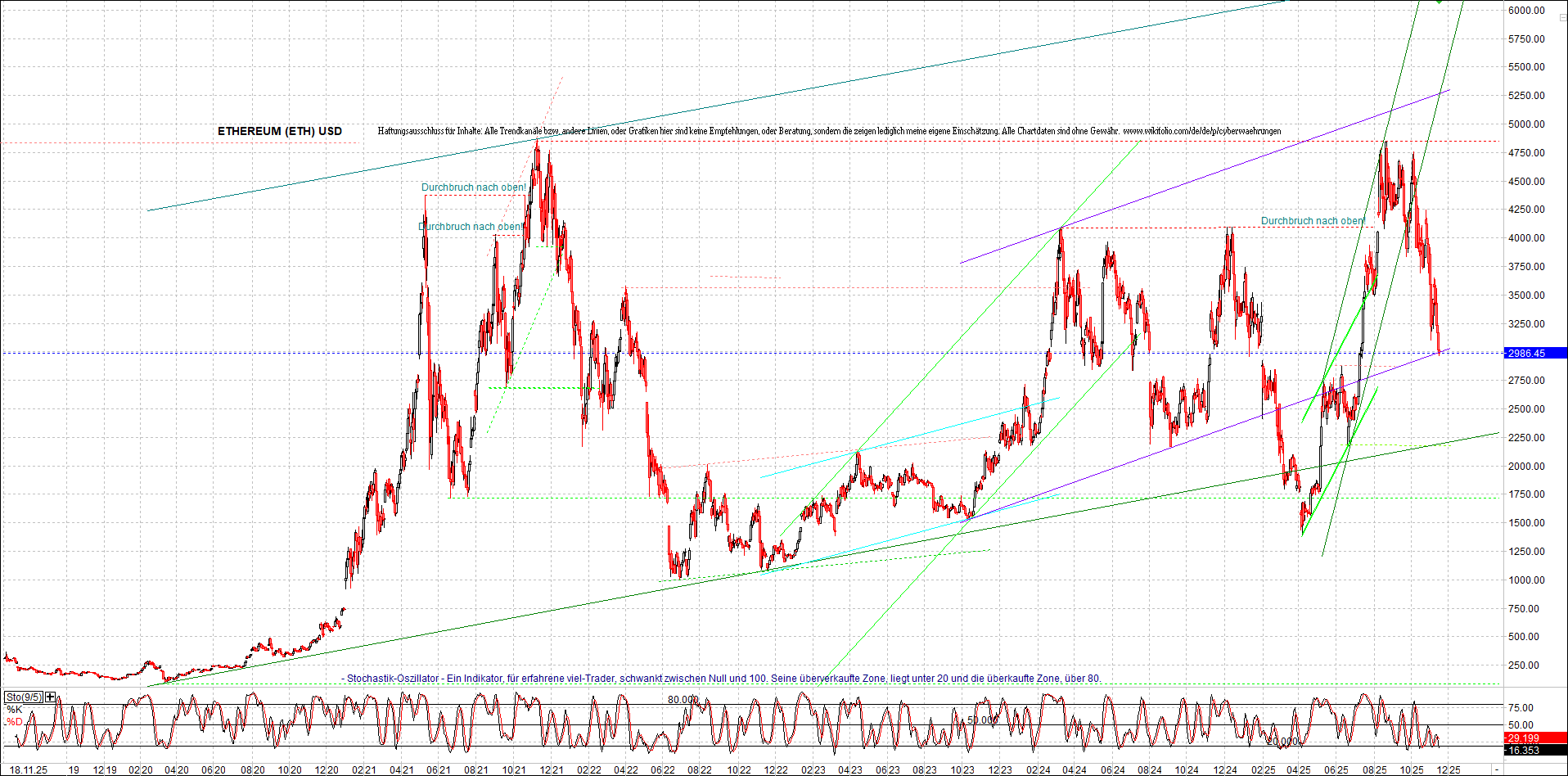 ETHEREUM (ETH) – 5 Jahre Chart, von heute Morgen, mit Charttechnik.