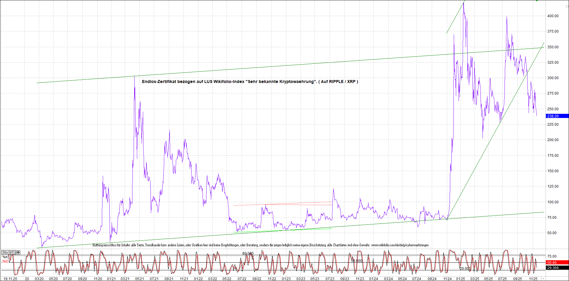 Anbei das dazugehörige Ripplezertifikat, bekannt als: Endlos-Zertifikat bezogen auf LUS Wikifolio-Index „Sehr bekannte Kryptowaehrung“.
