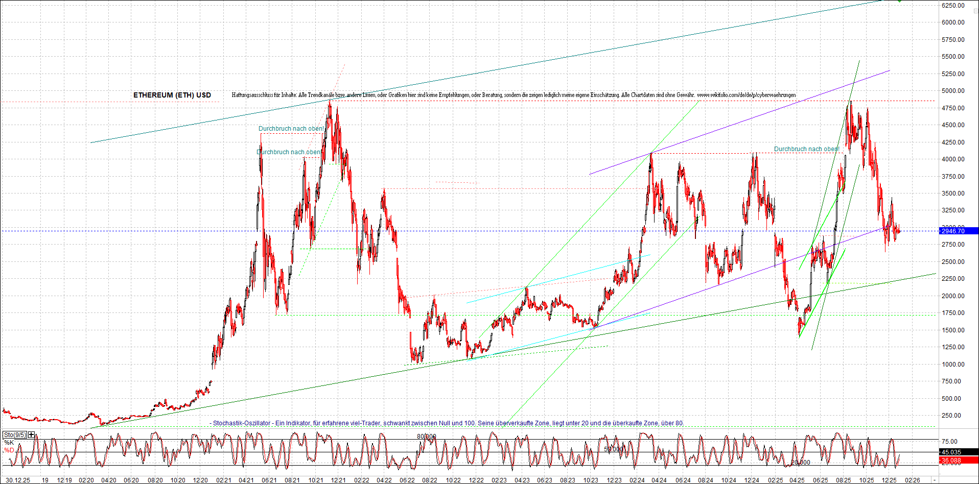 ETHEREUM (ETH) – 5 Jahre Chart, von heute Morgen, mit Charttechnik.