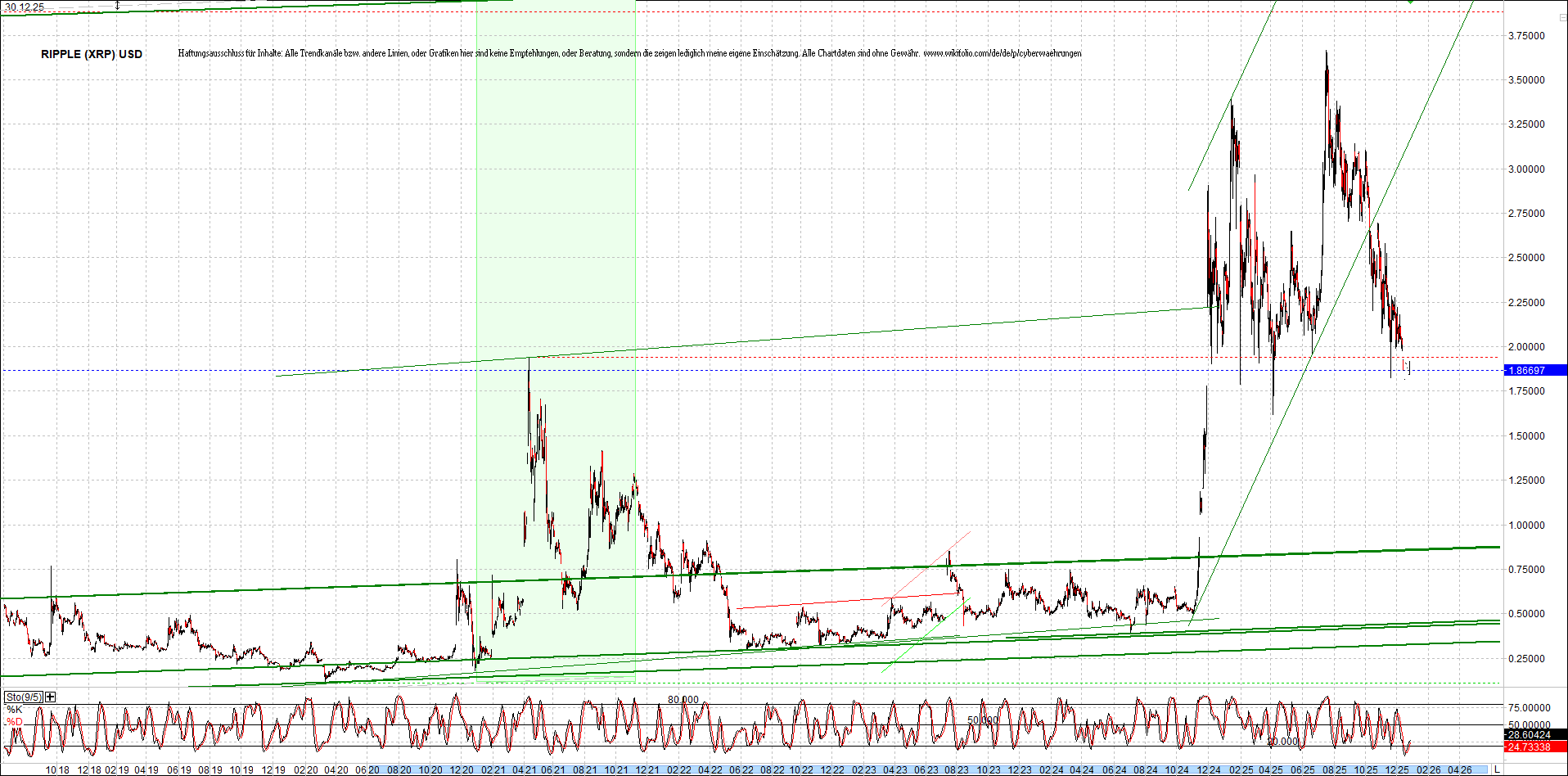 RIPPLE (XRP) – 6 Jahre Chart, von heute Morgen, mit Charttechnik.