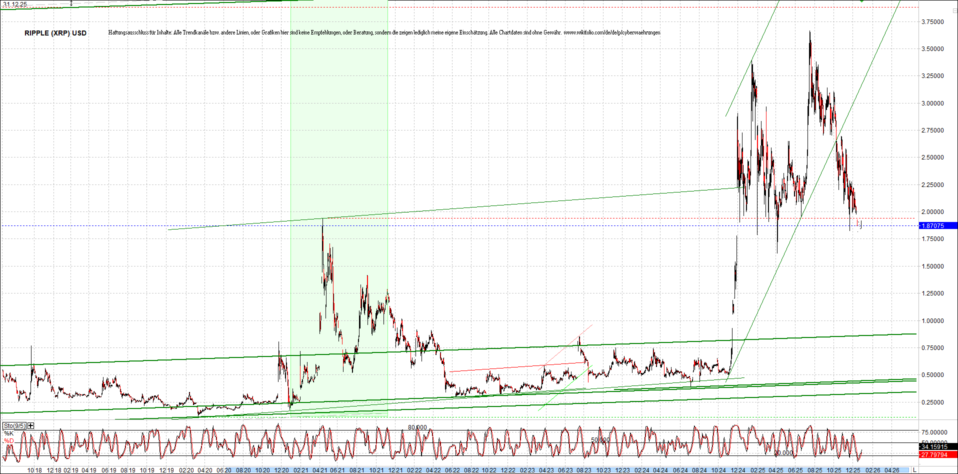 RIPPLE (XRP) – 6 Jahre Chart, von heute Morgen, mit Charttechnik.