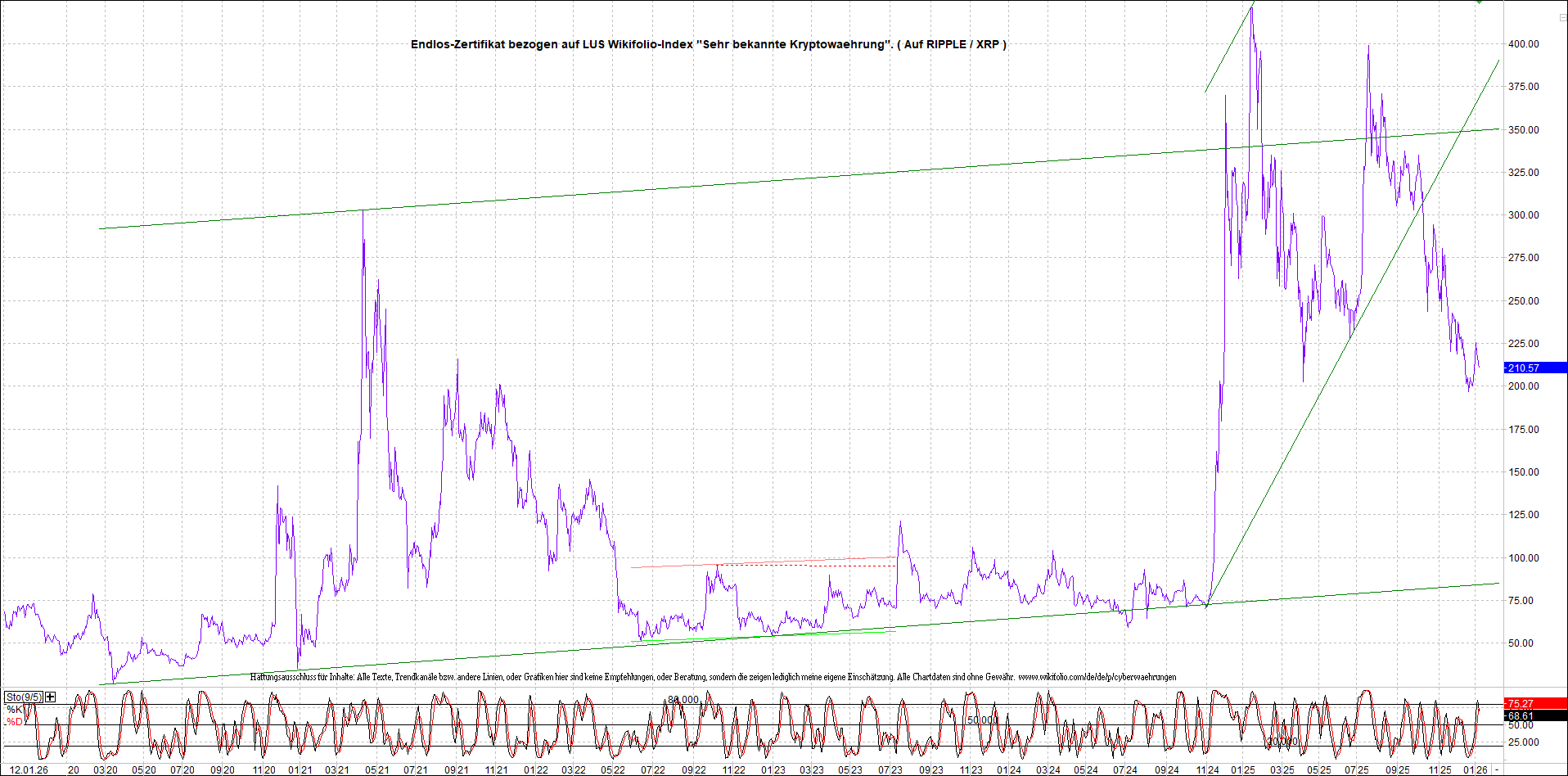 Anbei das dazugehörige Ripplezertifikat, bekannt als: Endlos-Zertifikat bezogen auf LUS Wikifolio-Index „Sehr bekannte Kryptowaehrung“.