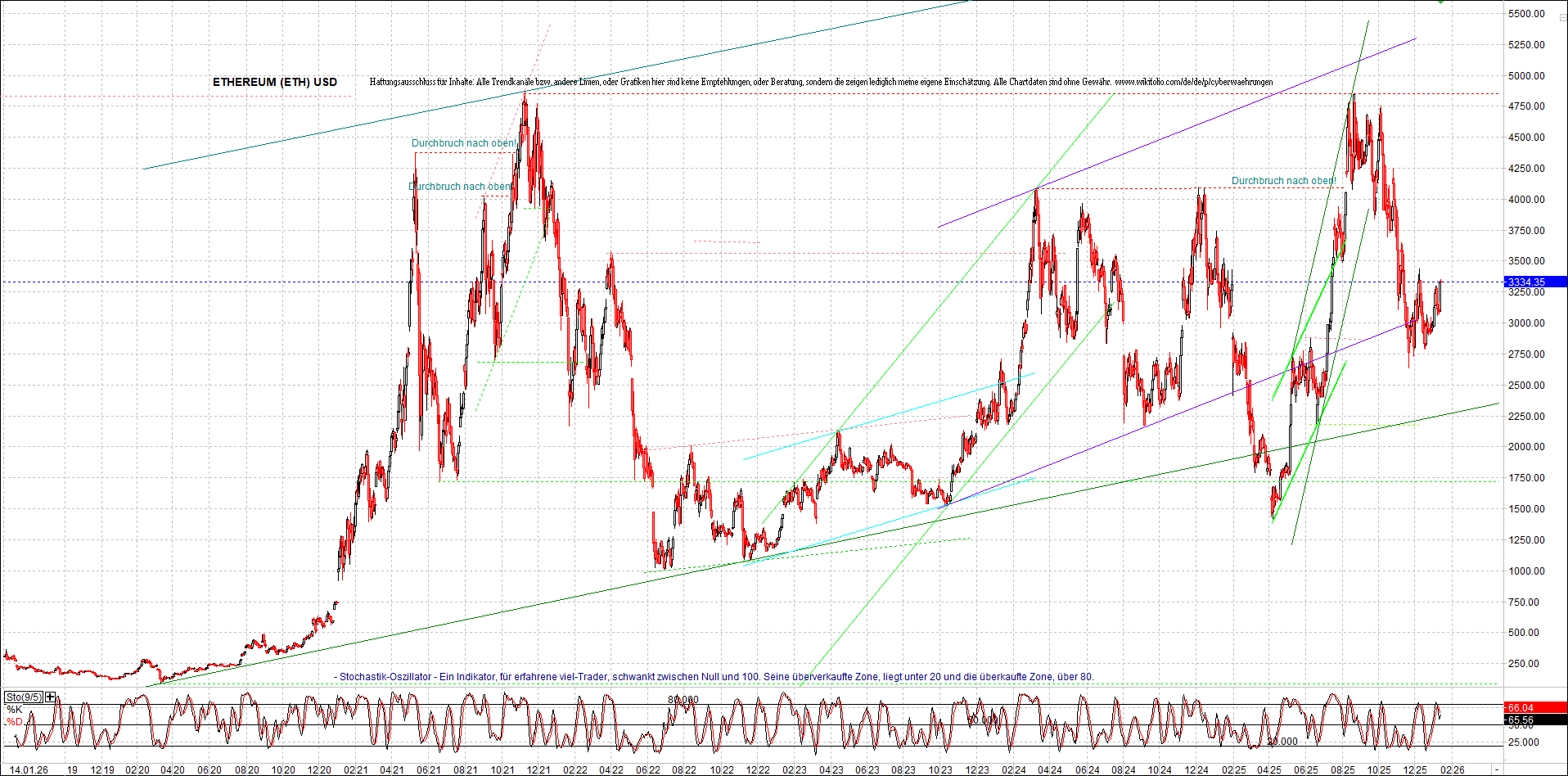 ETHEREUM (ETH) – 5 Jahre Chart, von heute Morgen, mit Charttechnik.