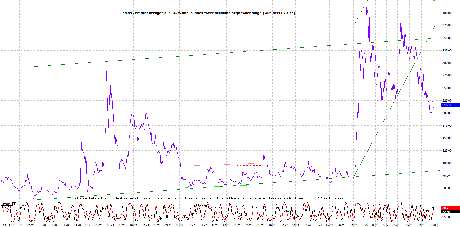 Anbei das dazugehörige Ripplezertifikat, bekannt als: Endlos-Zertifikat bezogen auf LUS Wikifolio-Index „Sehr bekannte Kryptowaehrung“.