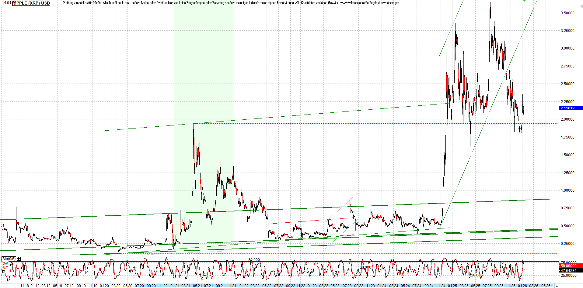 RIPPLE (XRP) – 6 Jahre Chart, von heute Morgen, mit Charttechnik.