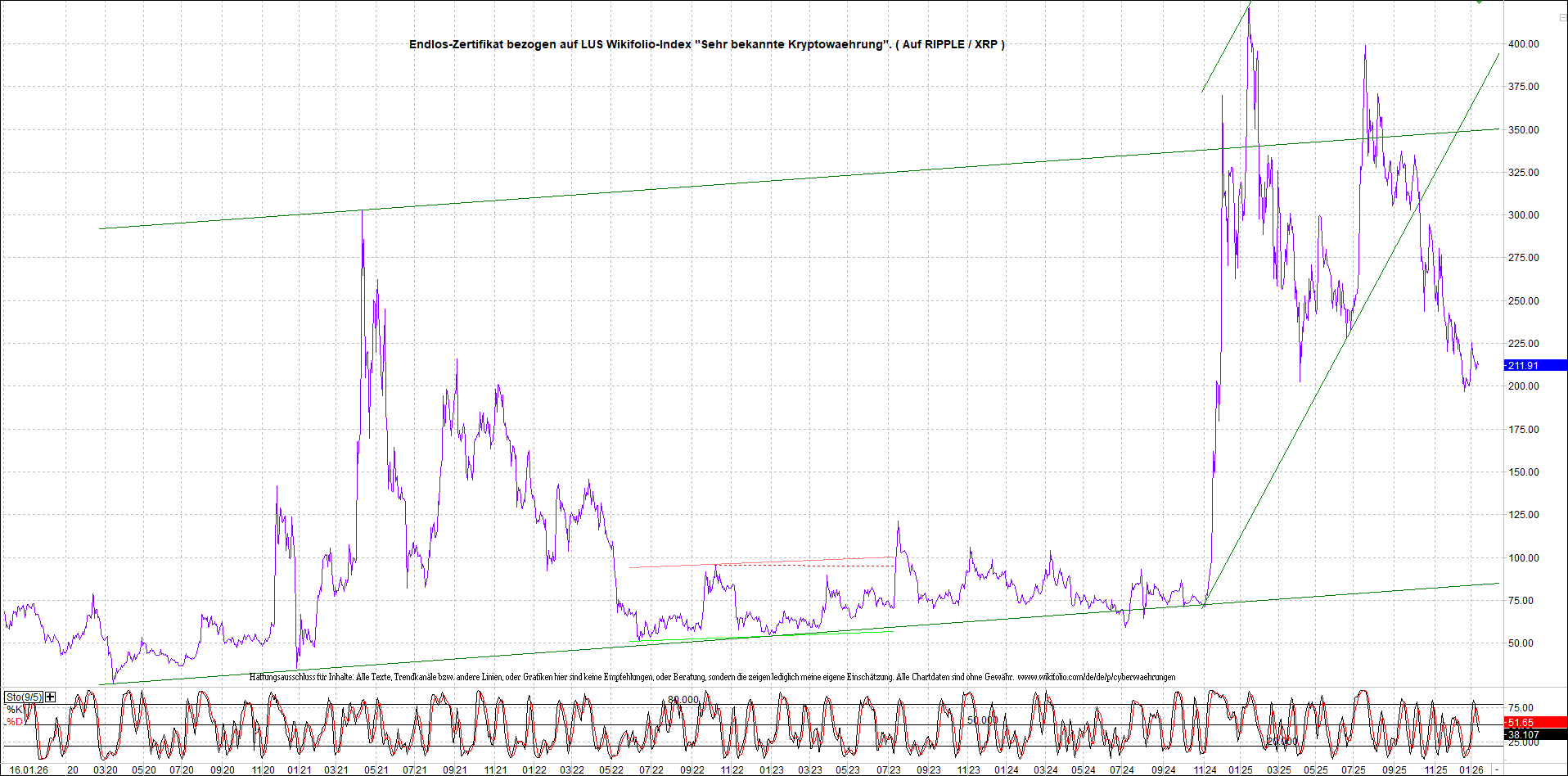Anbei das dazugehörige Ripplezertifikat, bekannt als: Endlos-Zertifikat bezogen auf LUS Wikifolio-Index „Sehr bekannte Kryptowaehrung“.