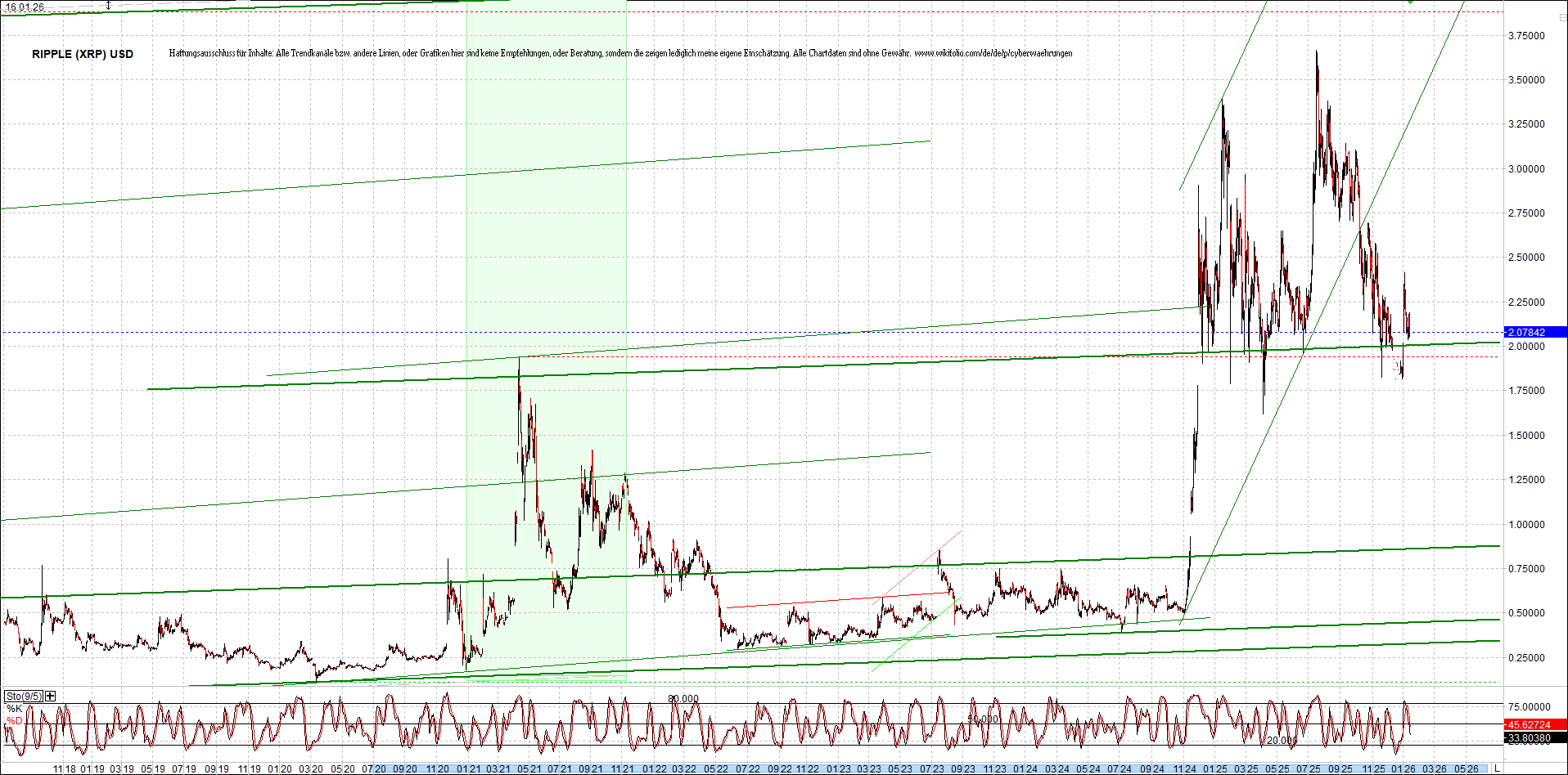 RIPPLE (XRP) – 6 Jahre Chart, von heute Morgen, mit Charttechnik.