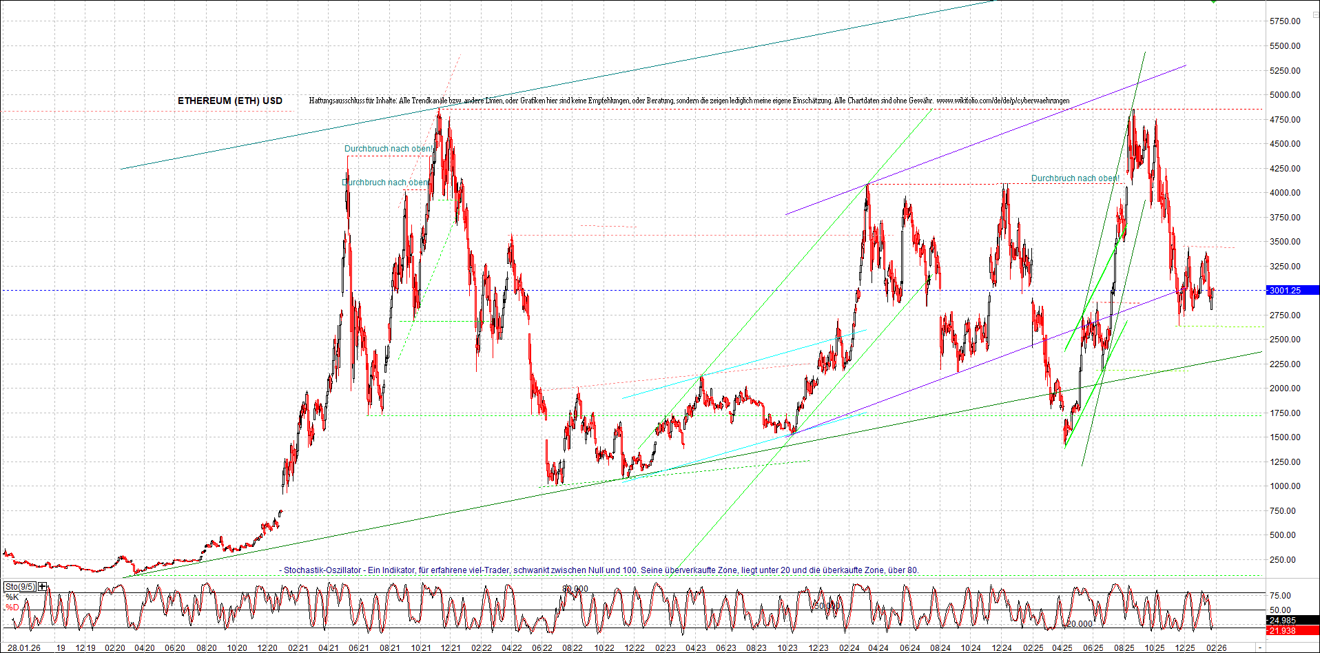ETHEREUM (ETH) – 5 Jahre Chart, von heute Morgen, mit Charttechnik.