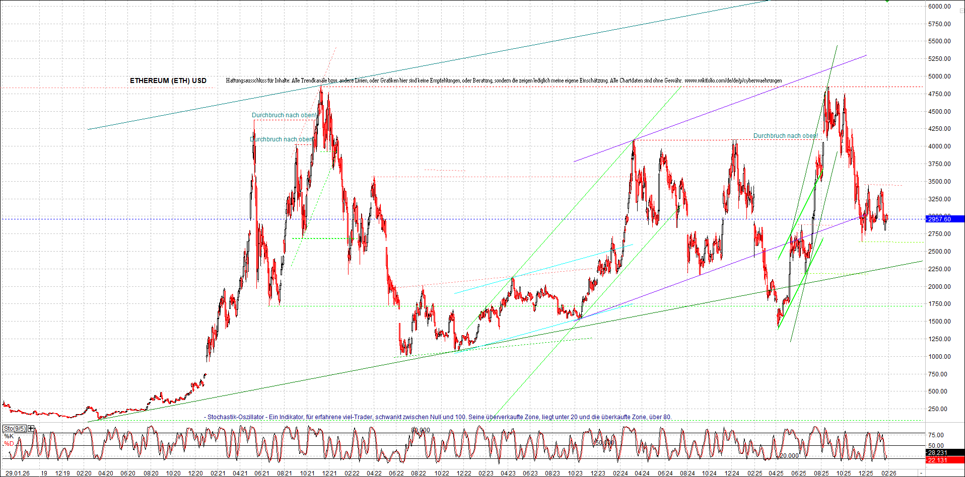 ETHEREUM (ETH) – 5 Jahre Chart, von heute Morgen, mit Charttechnik.