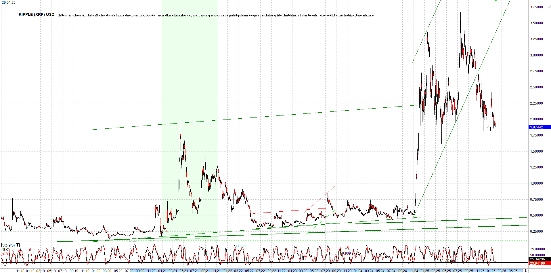 RIPPLE (XRP) – 6 Jahre Chart, von heute Morgen, mit Charttechnik.