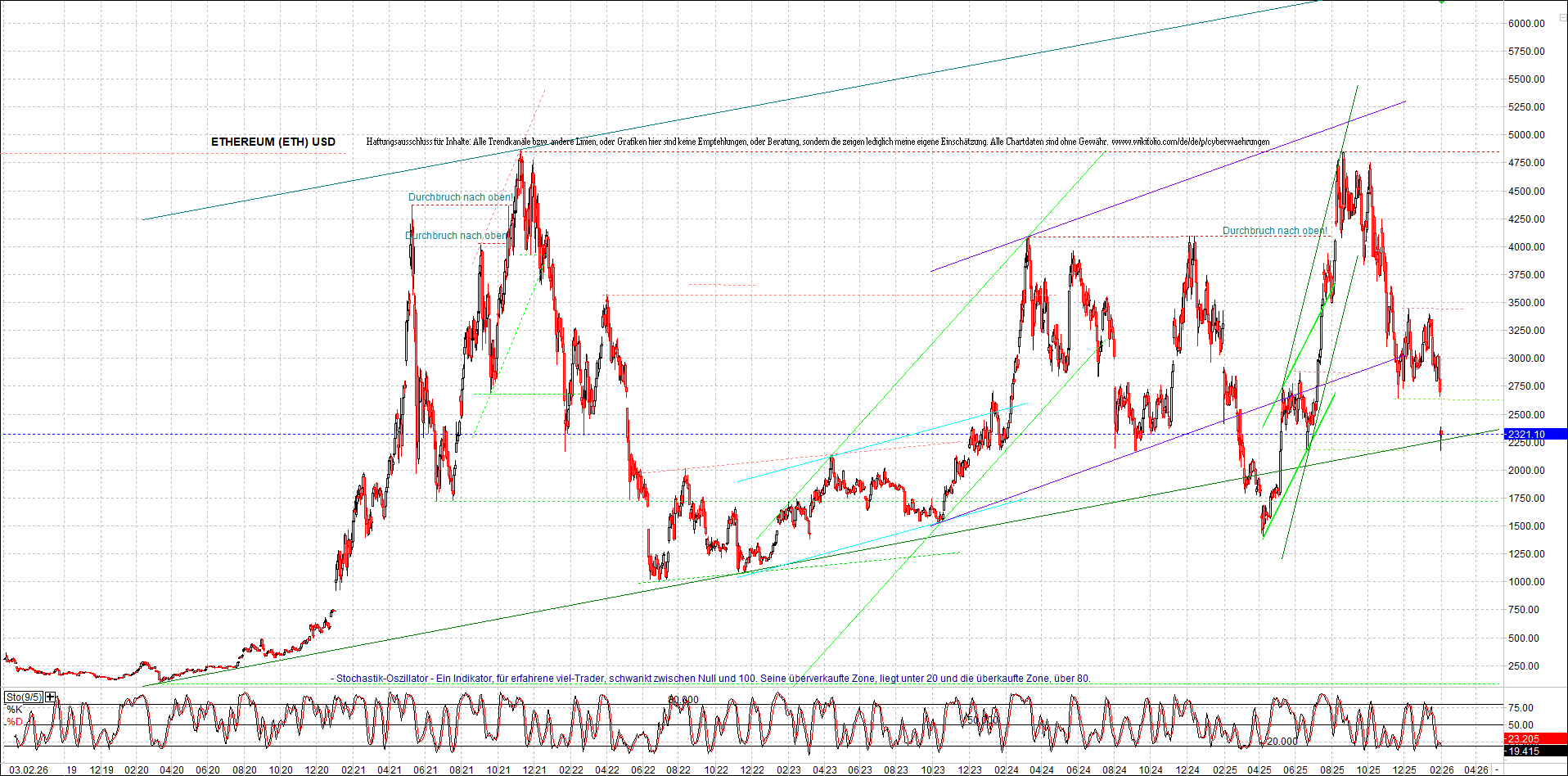 ETHEREUM (ETH) – 5 Jahre Chart, von heute Morgen, mit Charttechnik.