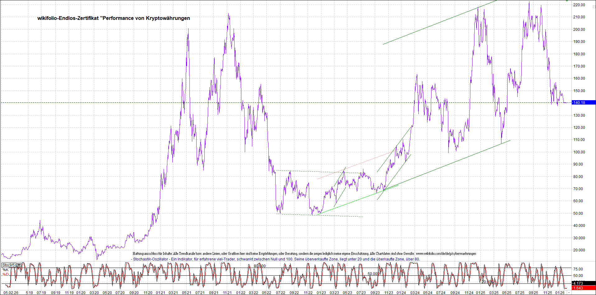 Das Zertifikat, bekannt als: Endlos-Zertifikat bezogen auf LUS Wikifolio-Index „Performance von Kryptowährungen“.