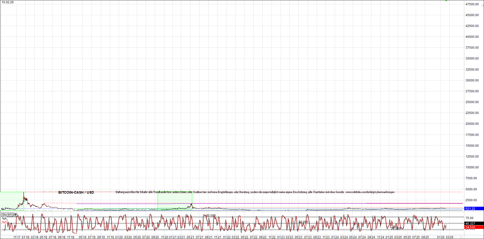 BITCOIN (BTC) – 10 Jahre Chart, von heute Morgen, mit Charttechnik.