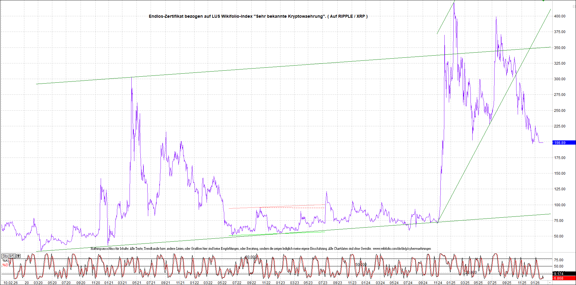 Anbei das dazugehörige Ripplezertifikat, bekannt als: Endlos-Zertifikat bezogen auf LUS Wikifolio-Index „Sehr bekannte Kryptowaehrung“.