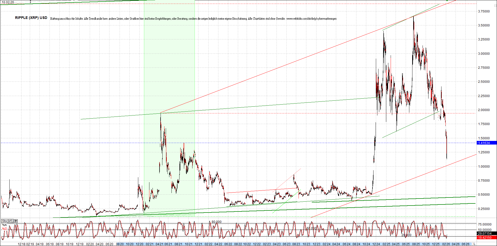RIPPLE (XRP) – 6 Jahre Chart, von heute Morgen, mit Charttechnik.