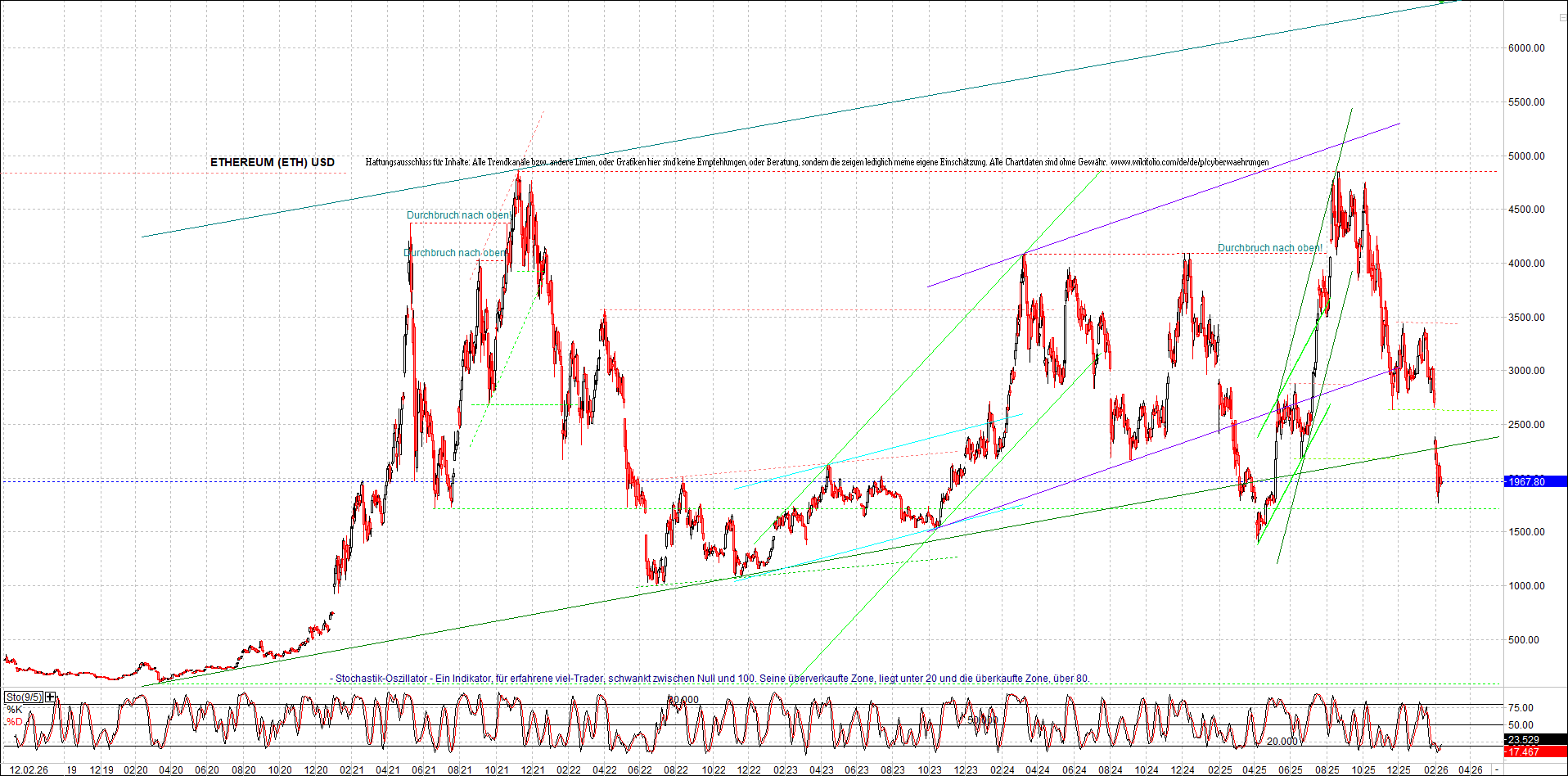 ETHEREUM (ETH) – 5 Jahre Chart, von heute Morgen, mit Charttechnik.