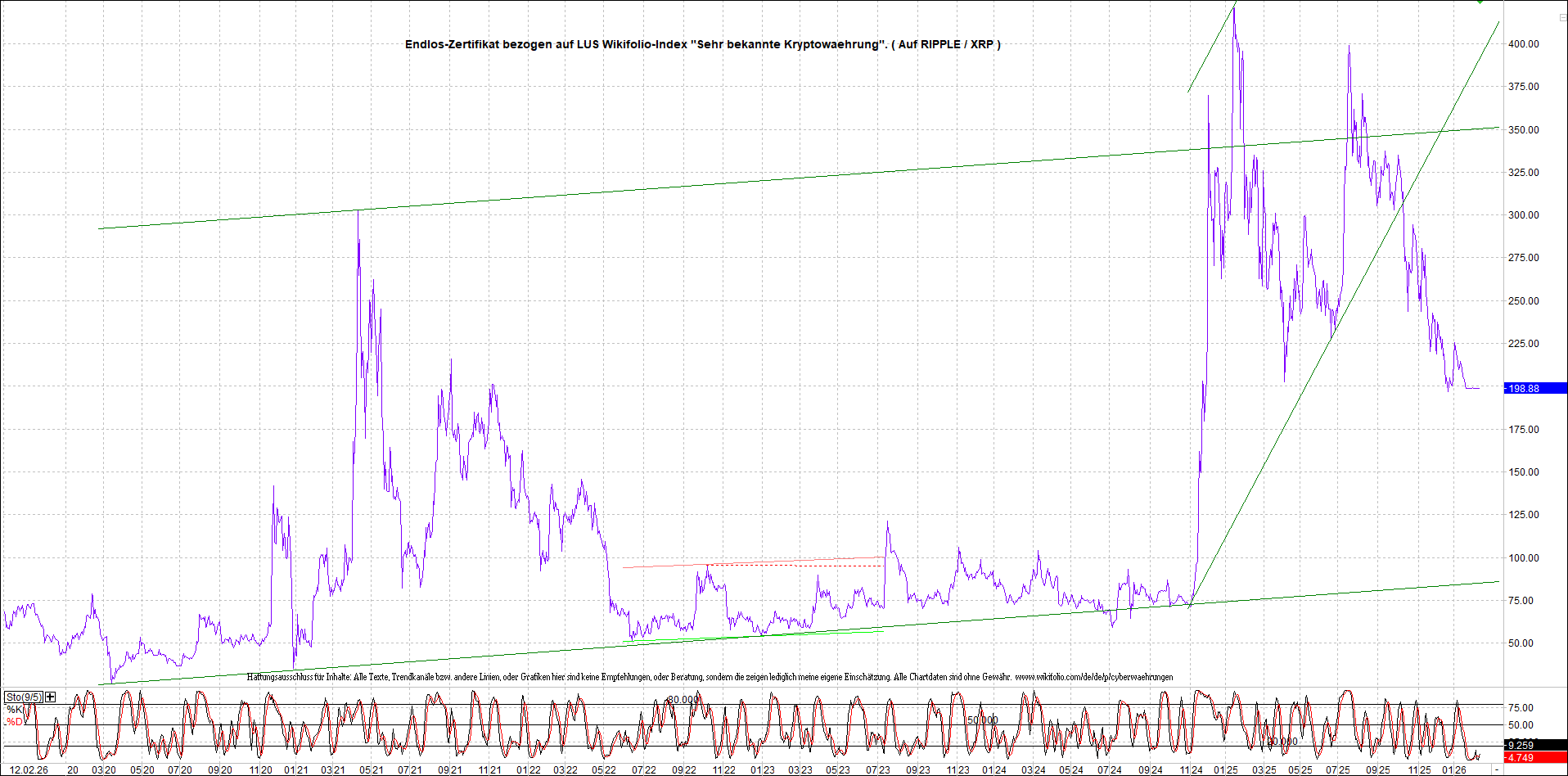 Anbei das dazugehörige Ripplezertifikat, bekannt als: Endlos-Zertifikat bezogen auf LUS Wikifolio-Index „Sehr bekannte Kryptowaehrung“.