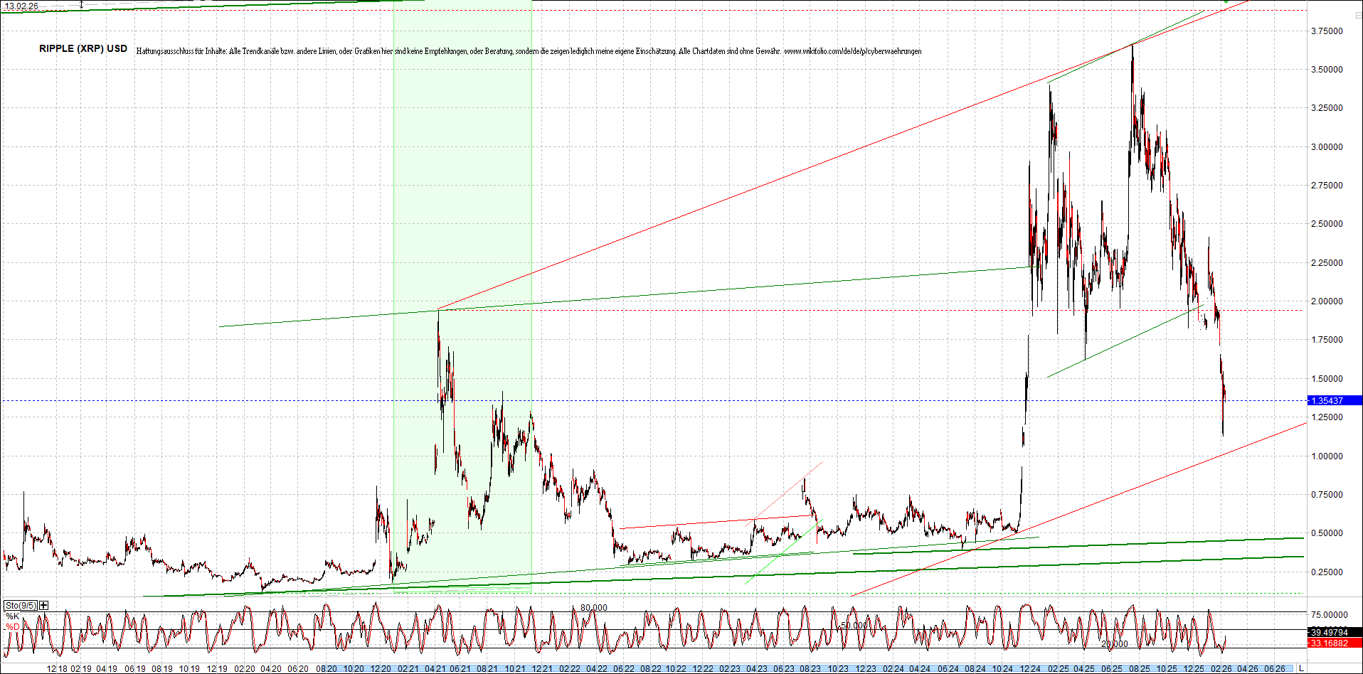 RIPPLE (XRP) – 6 Jahre Chart, von heute Morgen, mit Charttechnik.