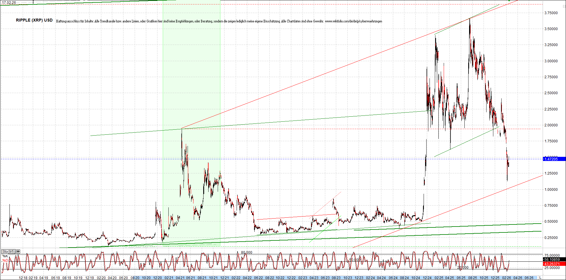 RIPPLE (XRP) – 6 Jahre Chart, von heute Morgen, mit Charttechnik.