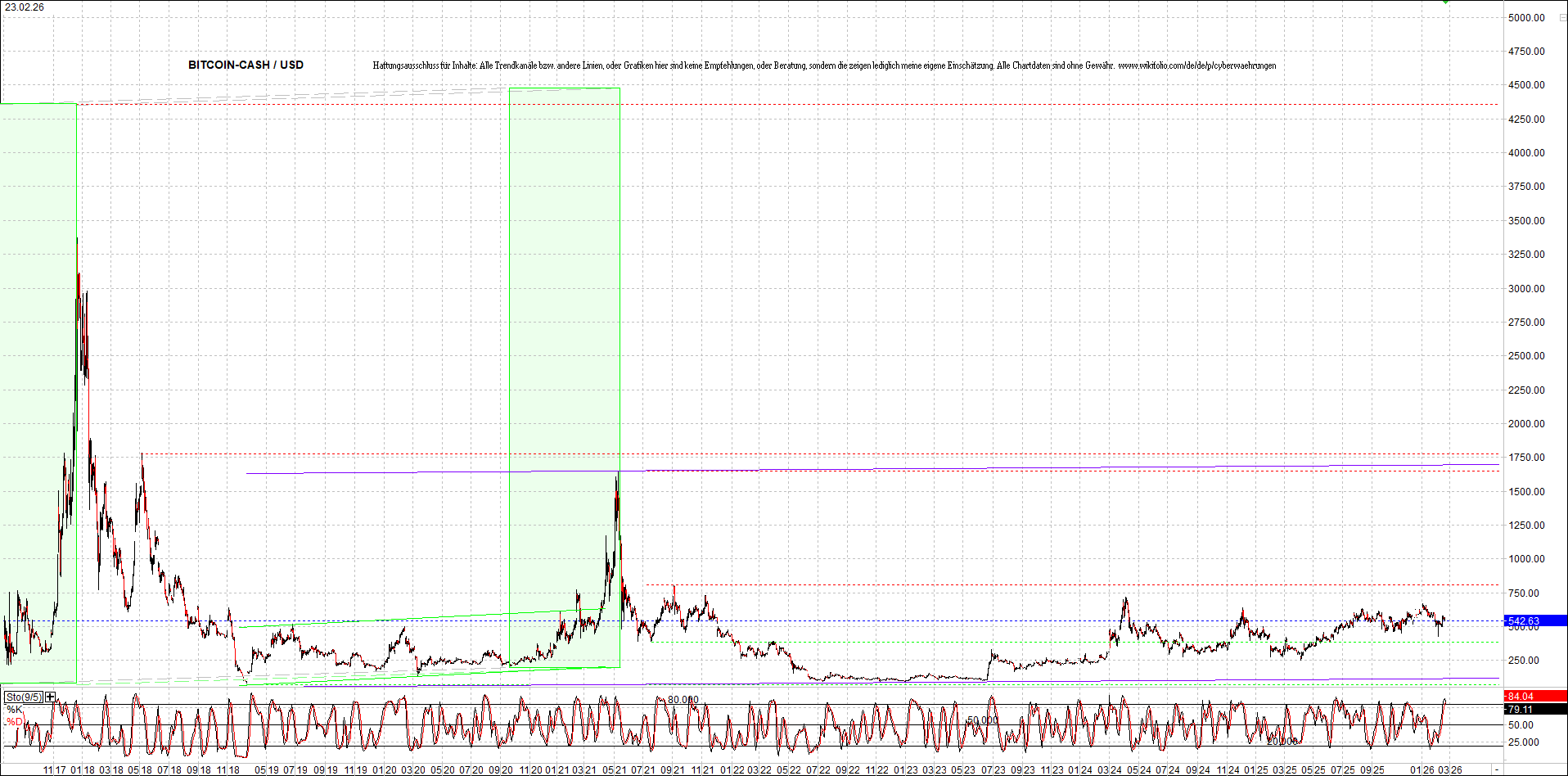 BITCOIN (BTC) – 10 Jahre Chart, von heute Morgen, mit Charttechnik.