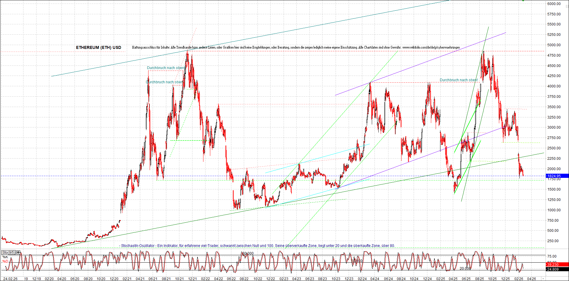 ETHEREUM (ETH) – 5 Jahre Chart, von heute Morgen, mit Charttechnik.
