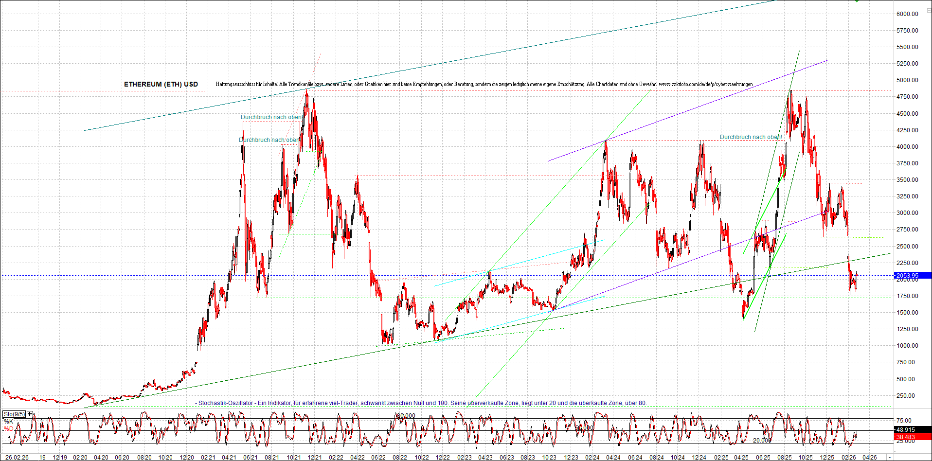 ETHEREUM (ETH) – 5 Jahre Chart, von heute Morgen, mit Charttechnik.