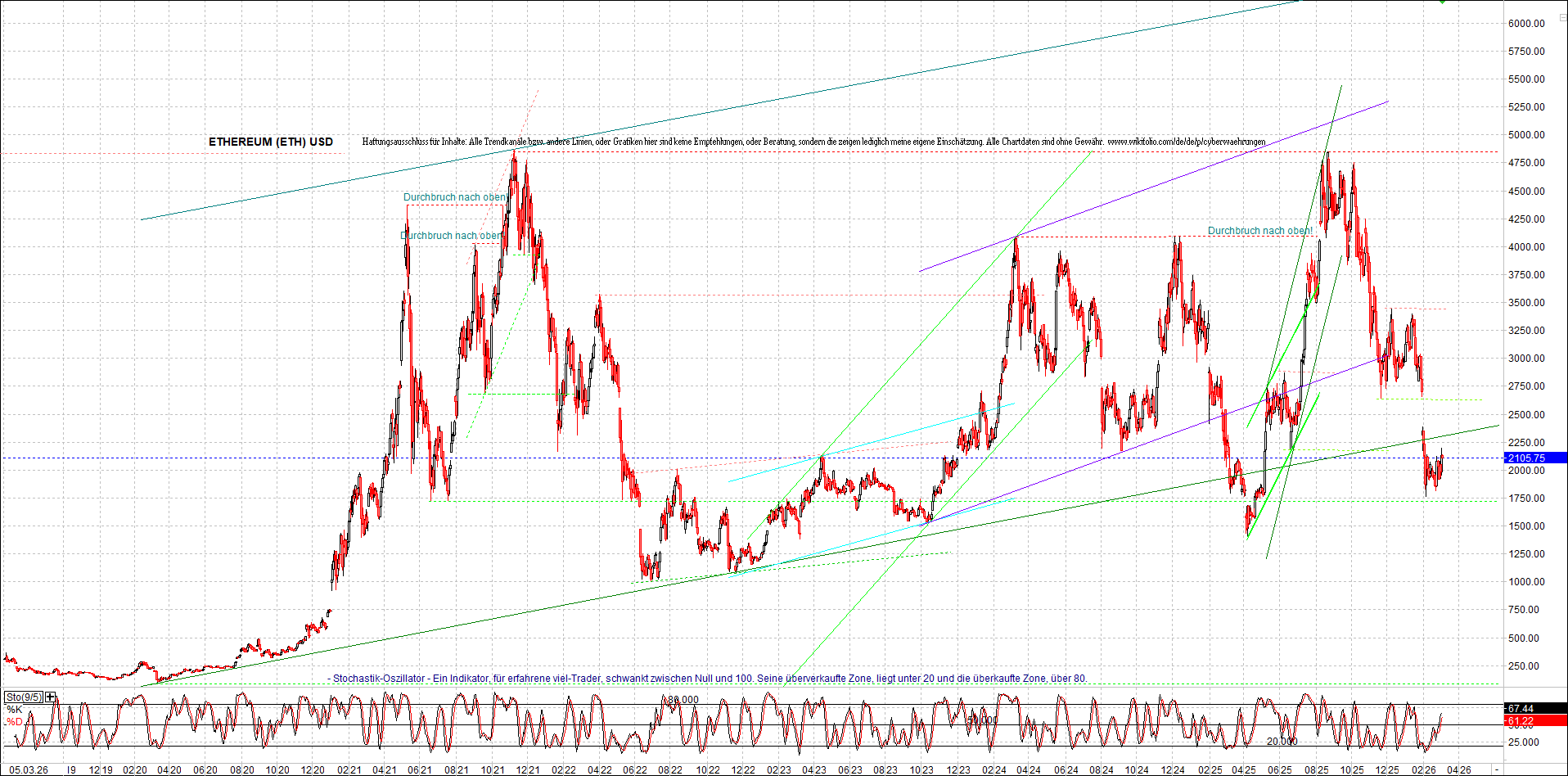 ETHEREUM (ETH) – 5 Jahre Chart, von heute Morgen, mit Charttechnik.