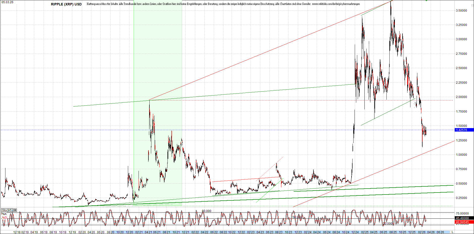 RIPPLE (XRP) – 6 Jahre Chart, von heute Morgen, mit Charttechnik.