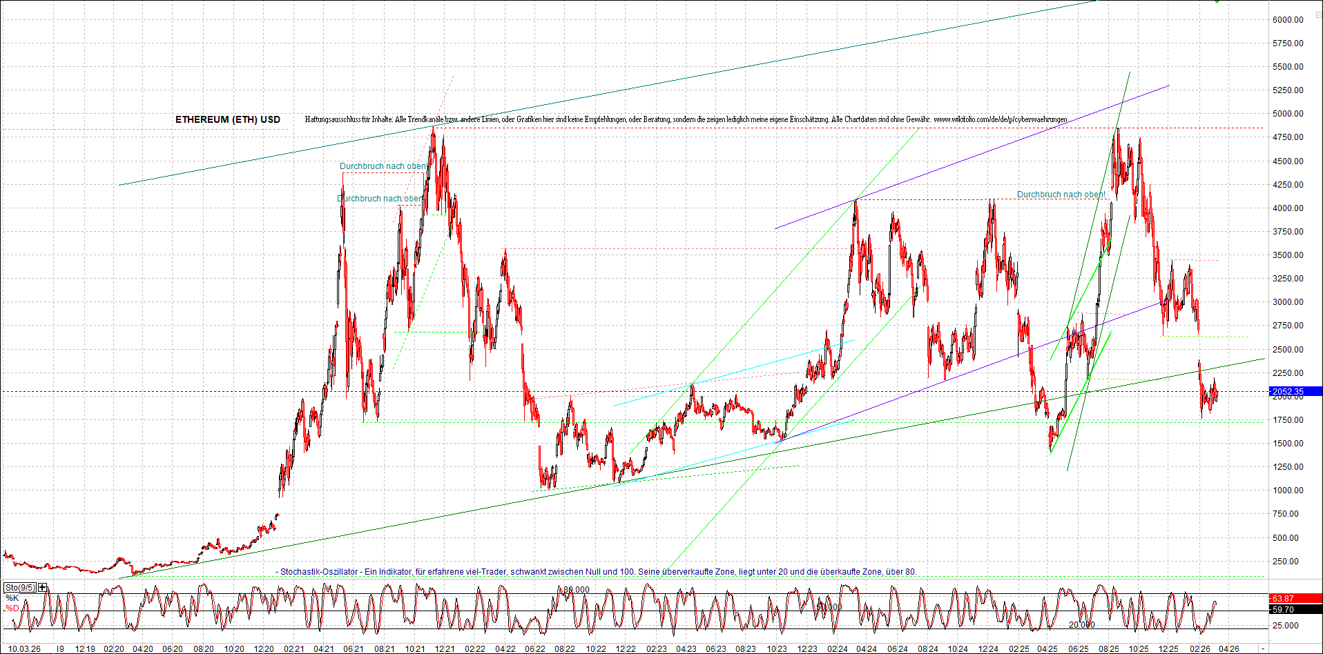 ETHEREUM (ETH) – 5 Jahre Chart, von heute Morgen, mit Charttechnik.