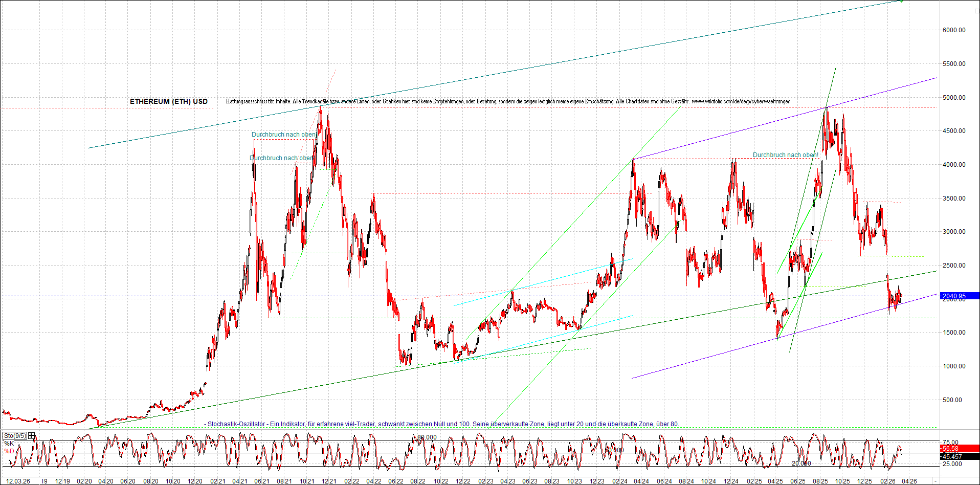 ETHEREUM (ETH) – 5 Jahre Chart, von heute Morgen, mit Charttechnik.