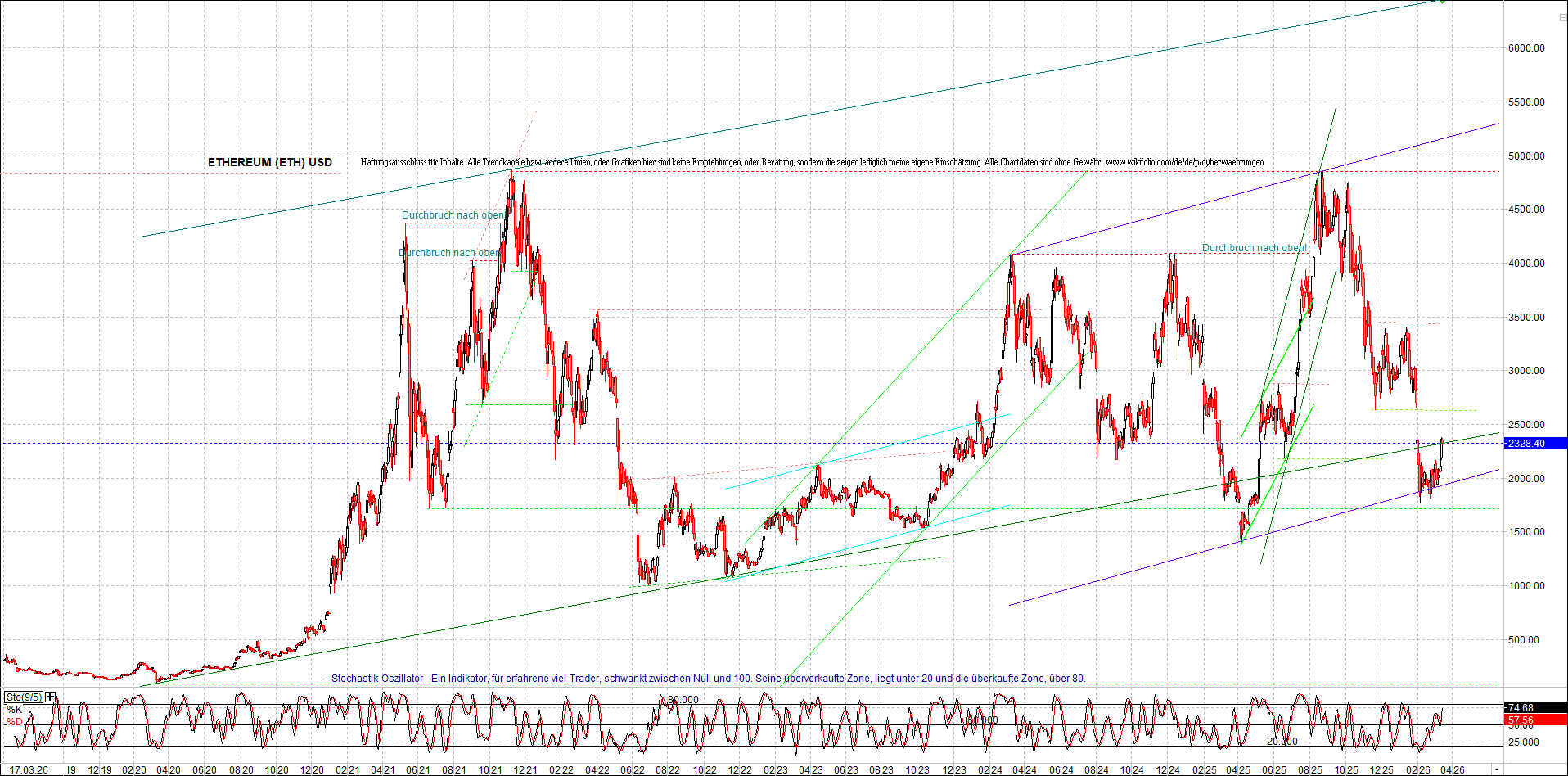 ETHEREUM (ETH) – 5 Jahre Chart, von heute Morgen, mit Charttechnik.