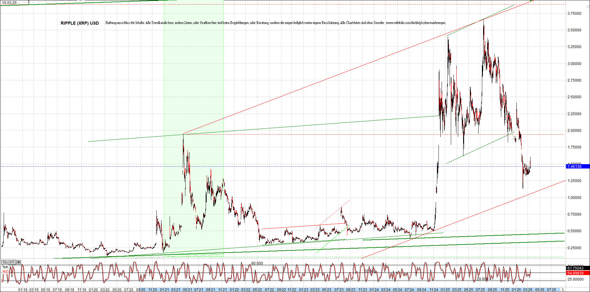 RIPPLE (XRP) – 6 Jahre Chart, von heute Morgen, mit Charttechnik.