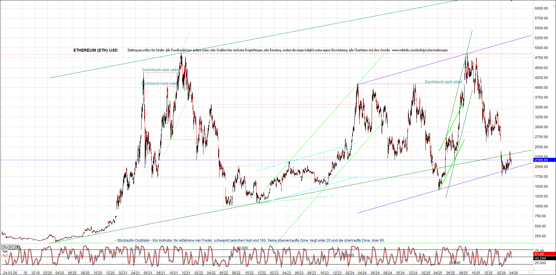 ETHEREUM (ETH) – 5 Jahre Chart, von heute Morgen, mit Charttechnik.