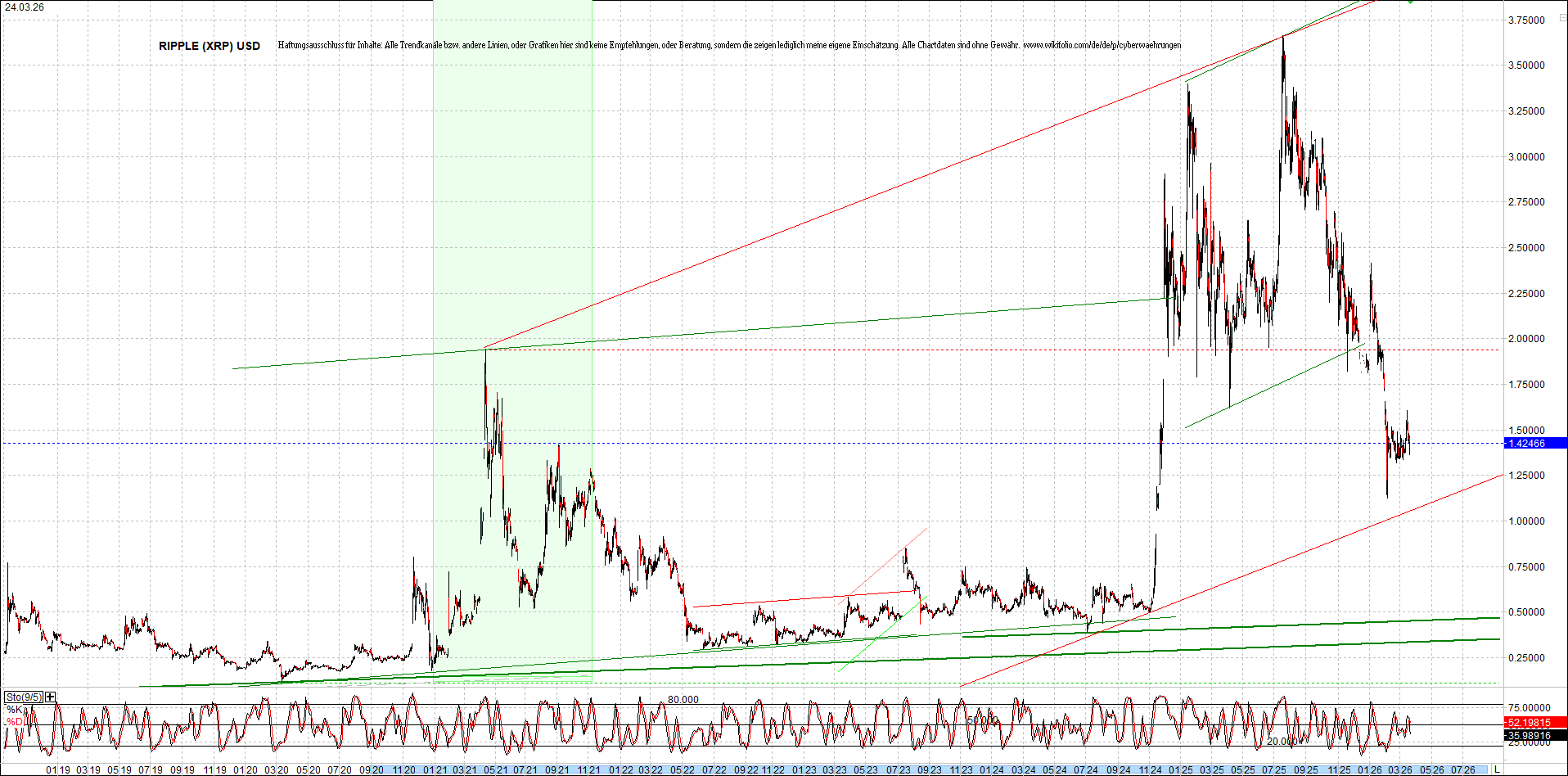 RIPPLE (XRP) – 6 Jahre Chart, von heute Morgen, mit Charttechnik.
