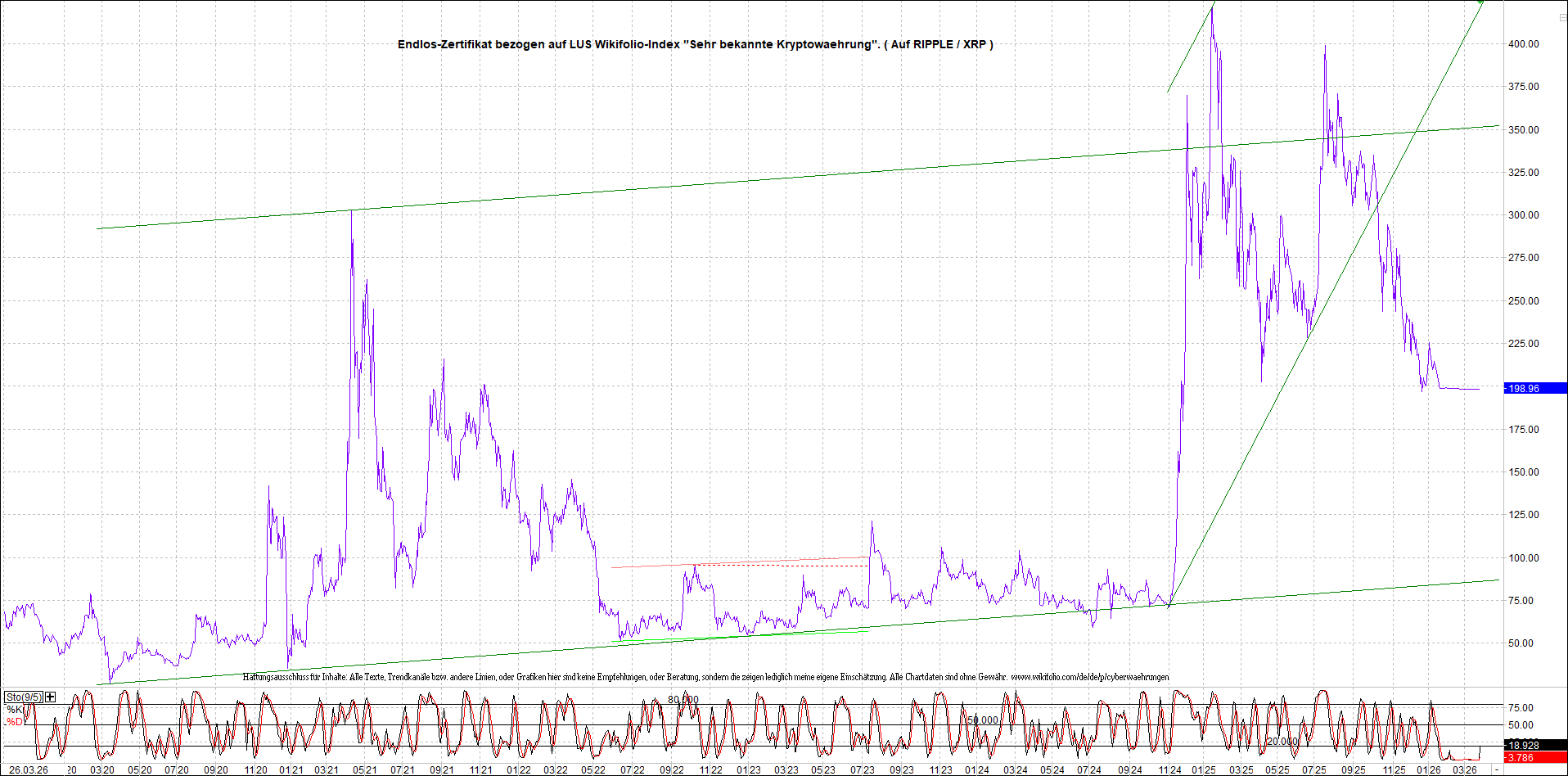 Anbei das dazugehörige Ripplezertifikat, bekannt als: Endlos-Zertifikat bezogen auf LUS Wikifolio-Index „Sehr bekannte Kryptowaehrung“.