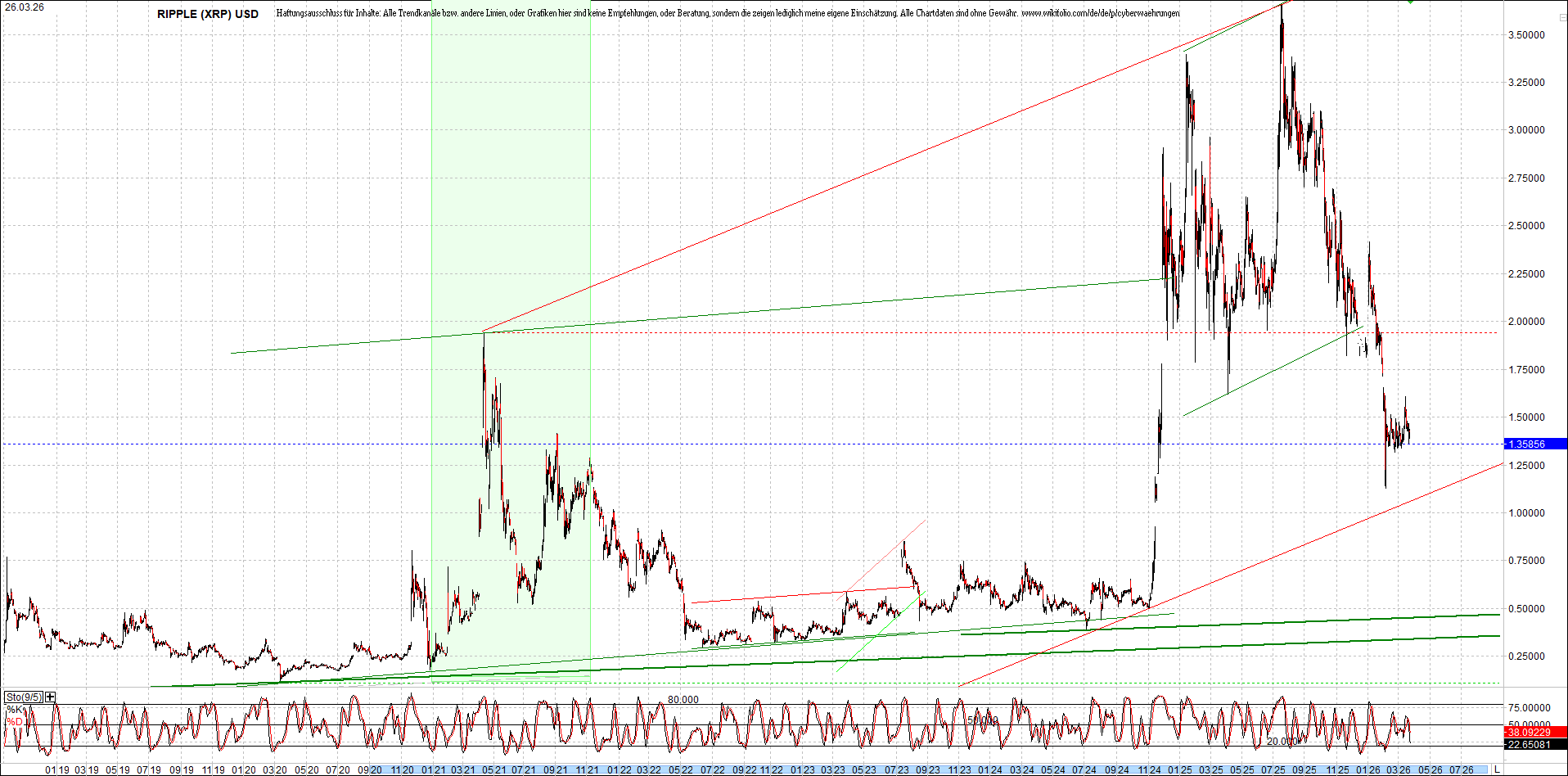 RIPPLE (XRP) – 6 Jahre Chart, von heute Morgen, mit Charttechnik.