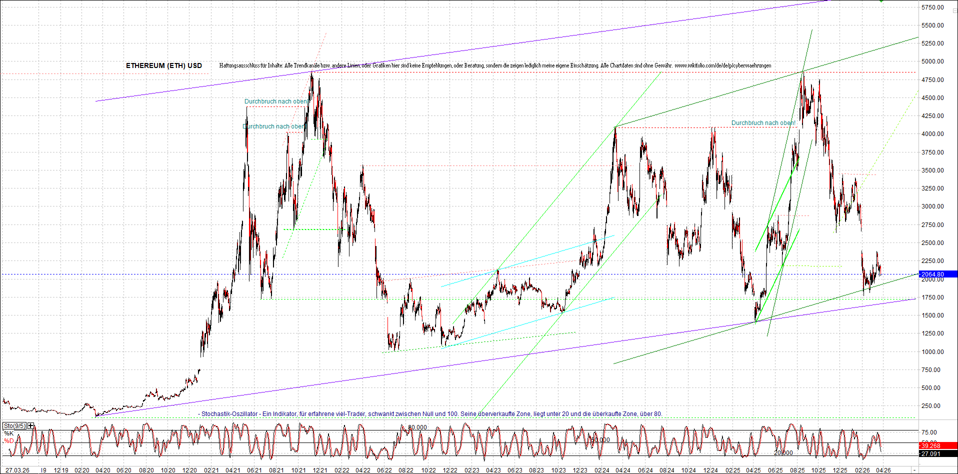 ETHEREUM (ETH) – 5 Jahre Chart, von heute Morgen, mit Charttechnik.
