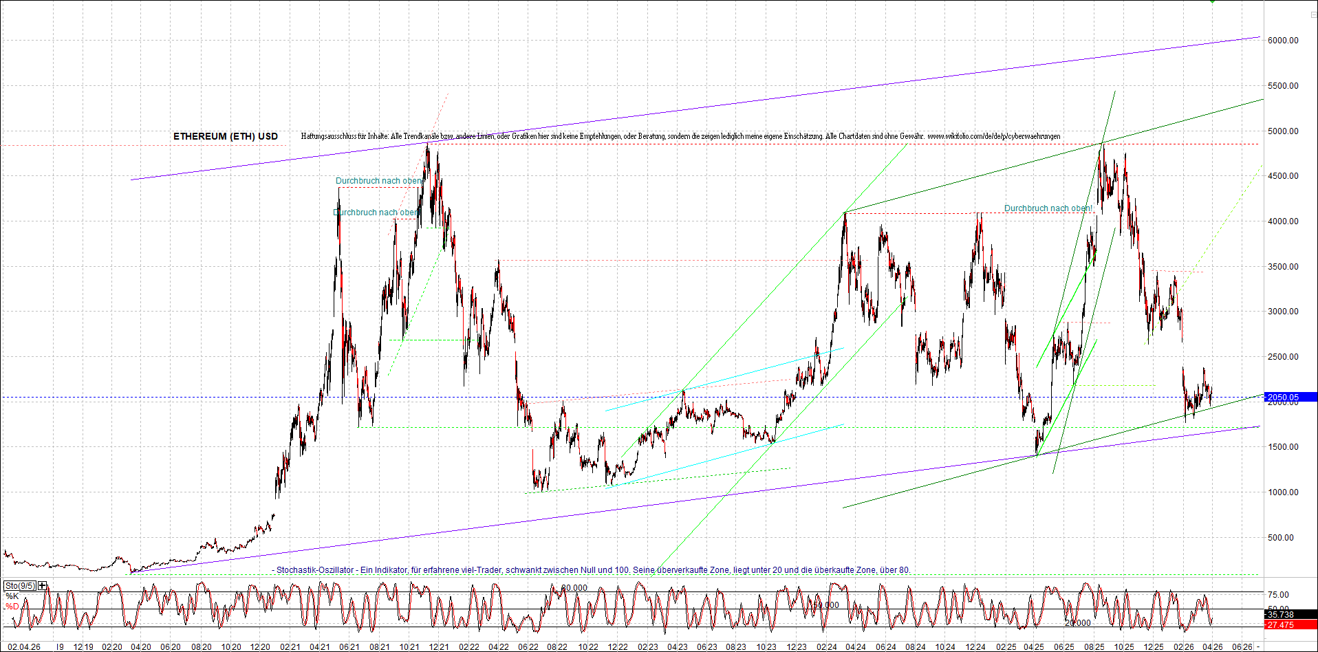 ETHEREUM (ETH) – 5 Jahre Chart, von heute Morgen, mit Charttechnik.