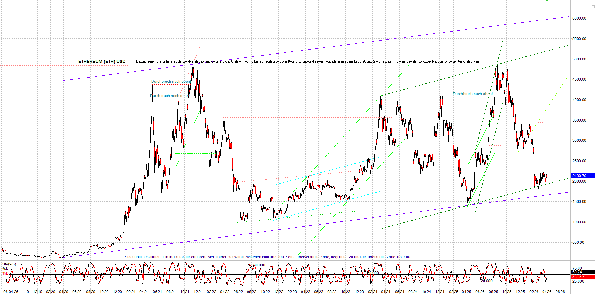 ETHEREUM (ETH) – 5 Jahre Chart, von heute Morgen, mit Charttechnik.