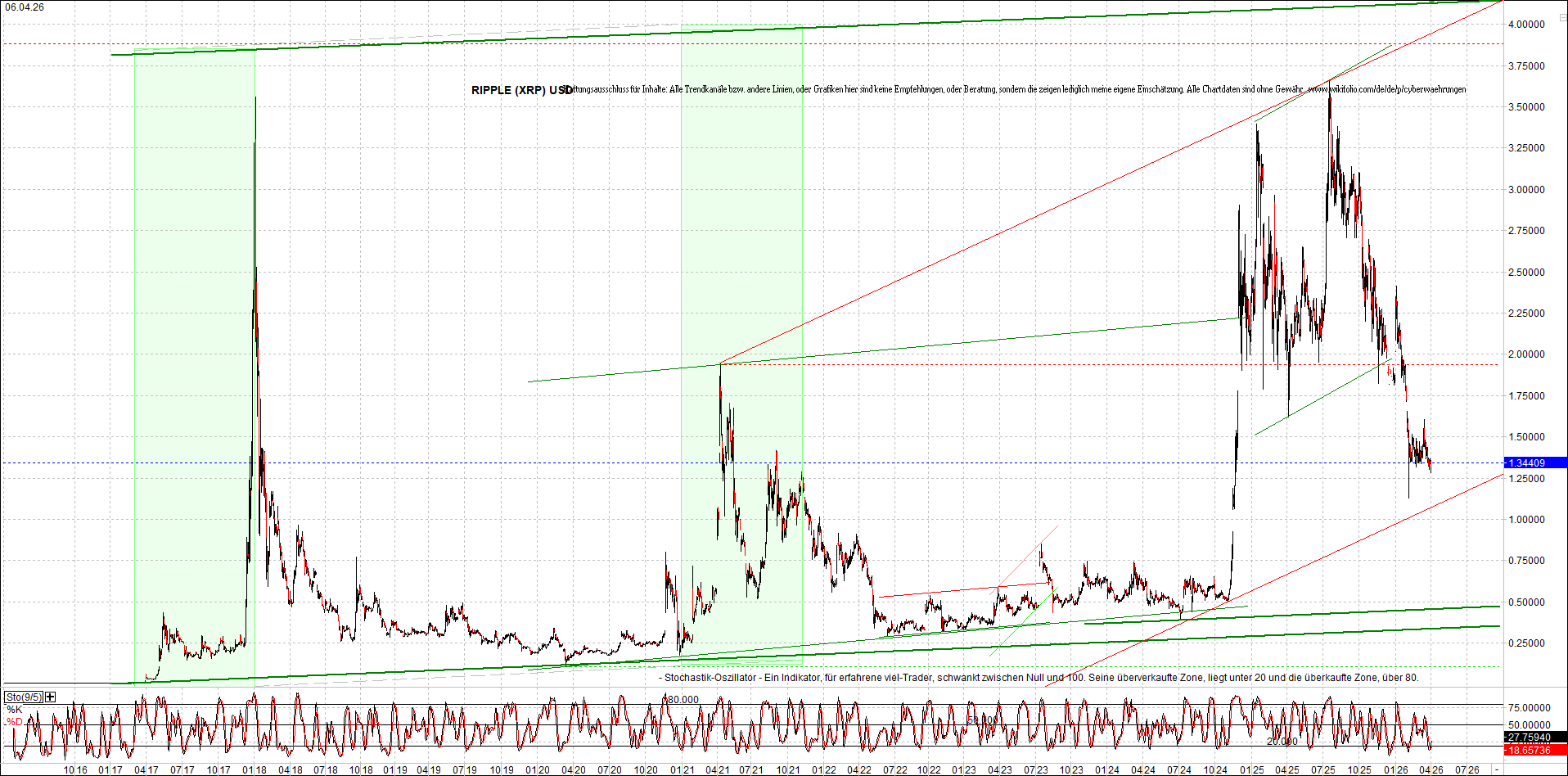 RIPPLE (XRP) – 6 Jahre Chart, von heute Morgen, mit Charttechnik.