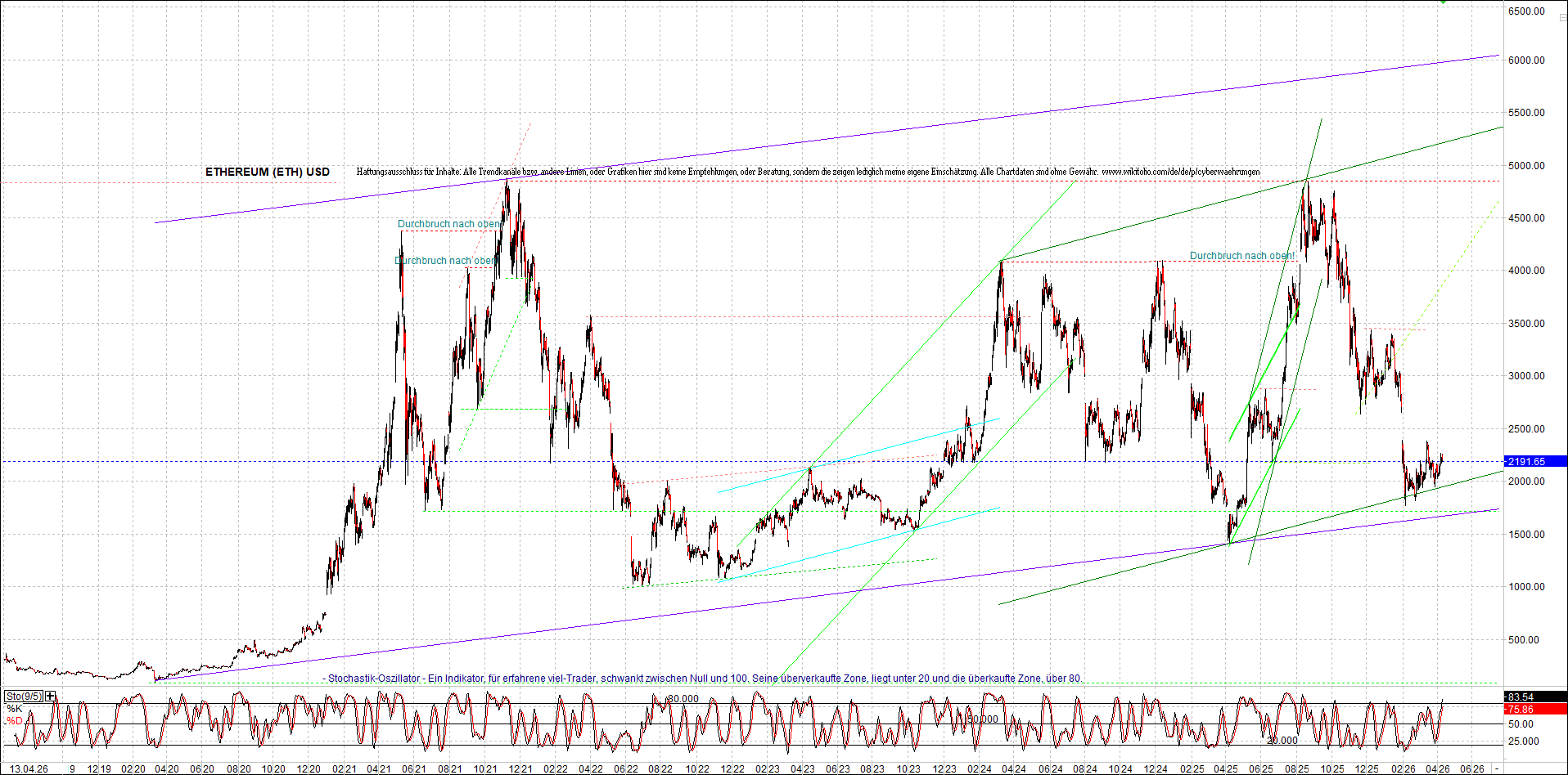 ETHEREUM (ETH) – 5 Jahre Chart, von heute Morgen, mit Charttechnik.