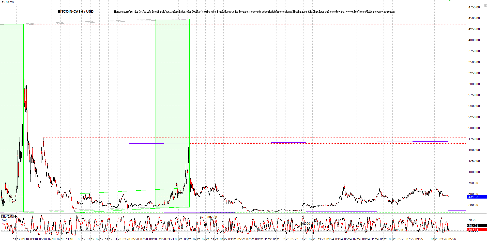 Bitcoin Cash (BCH) – 6 Jahre Chart, von heute Morgen, mit Charttechnik.