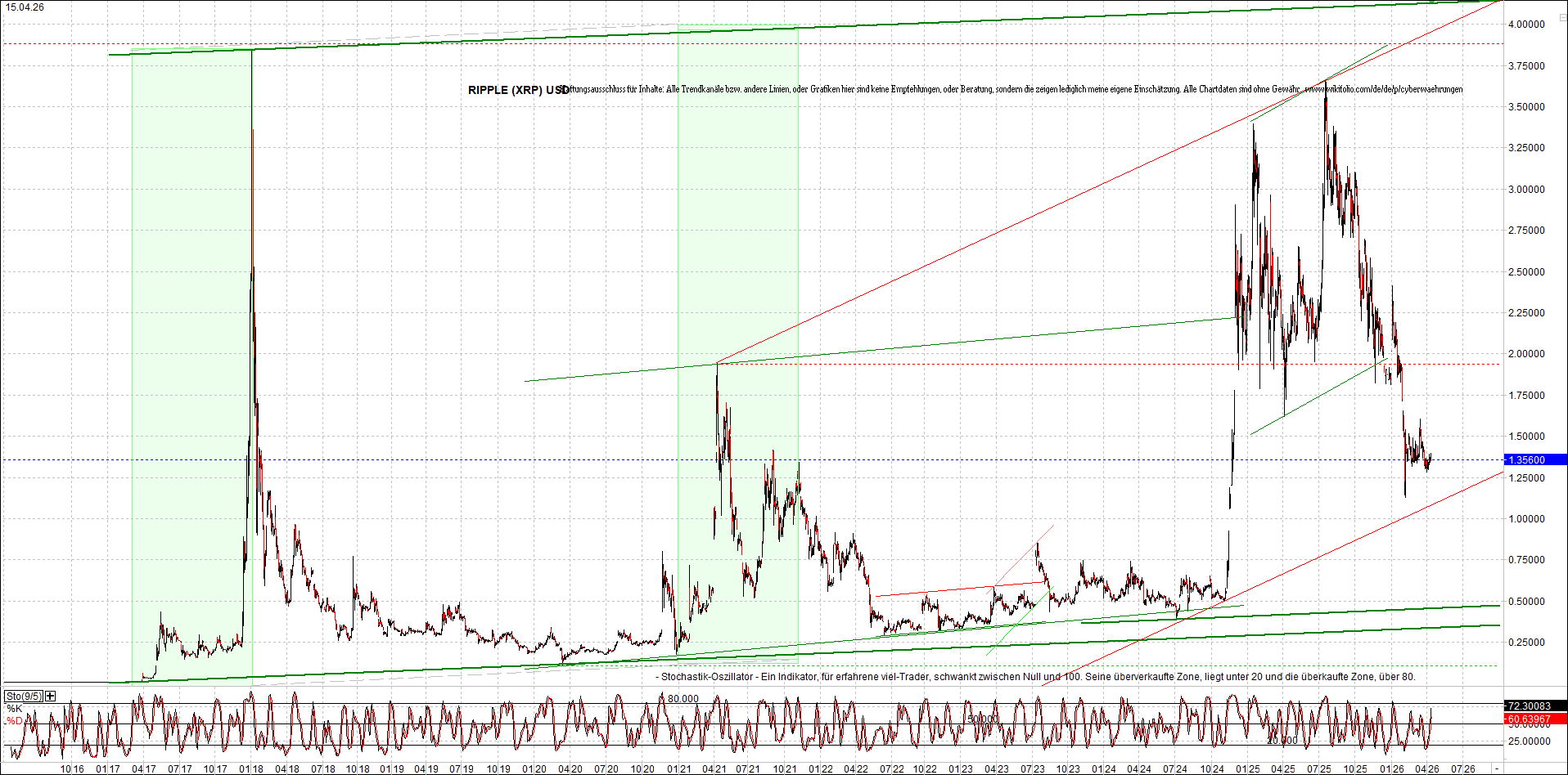 RIPPLE (XRP) – 6 Jahre Chart, von heute Morgen, mit Charttechnik.