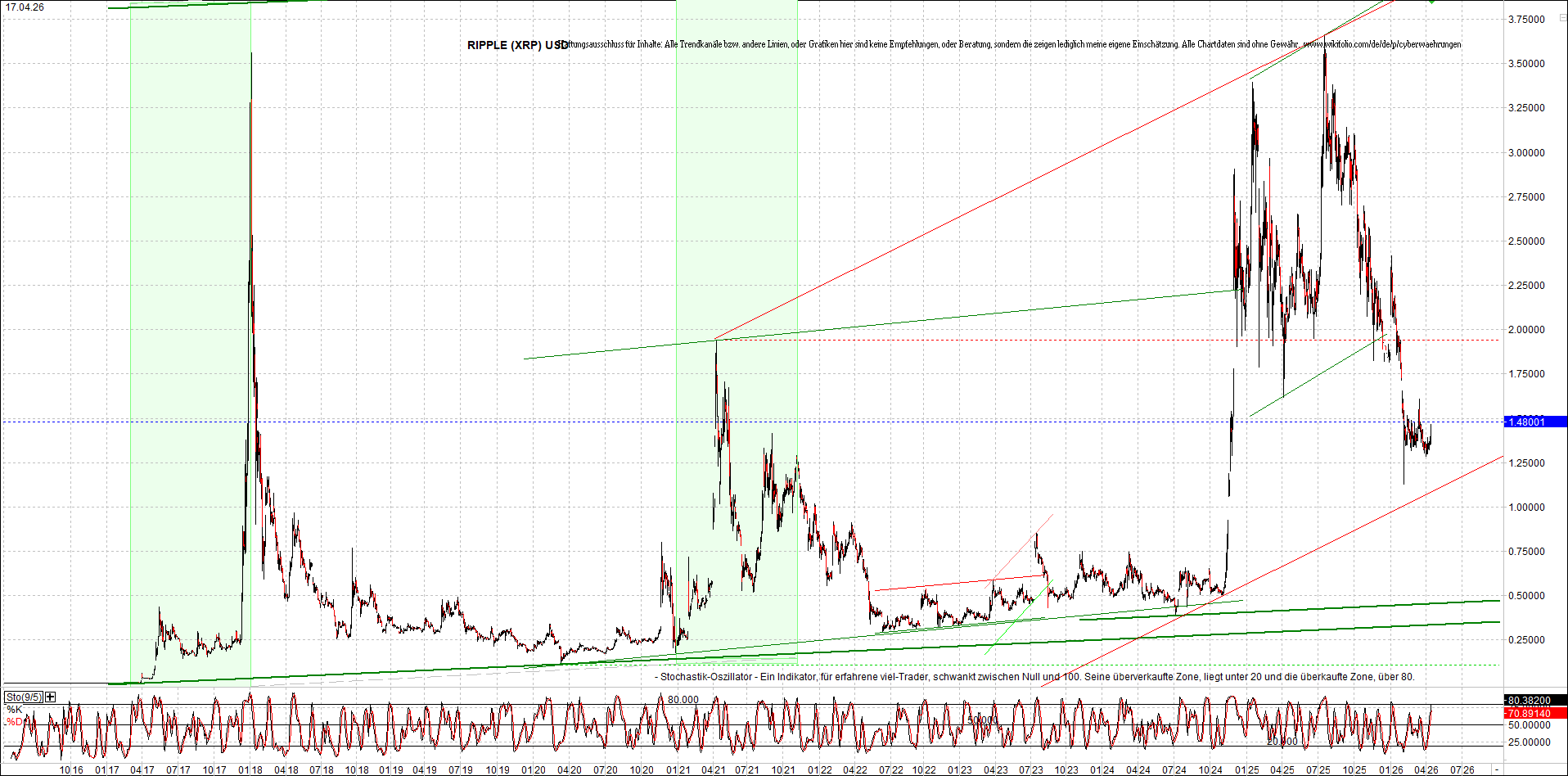 RIPPLE (XRP) – 6 Jahre Chart, von heute Morgen, mit Charttechnik.