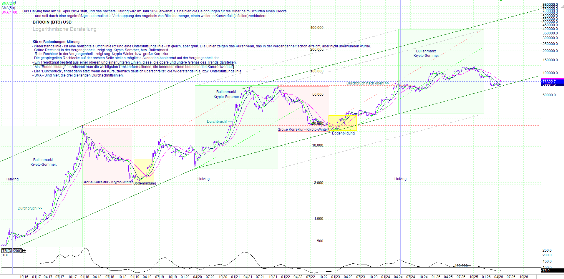 BITCOIN (BTC) – 10 Jahre Chart, von heute Morgen, mit Charttechnik.